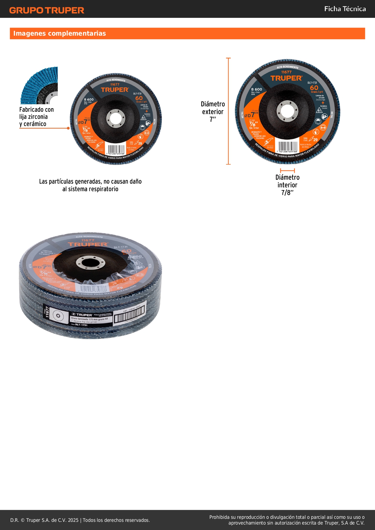-Fabricado con lija de zirconia y cerámica, con respaldo fibra de vidrio para mayor flexibilidad