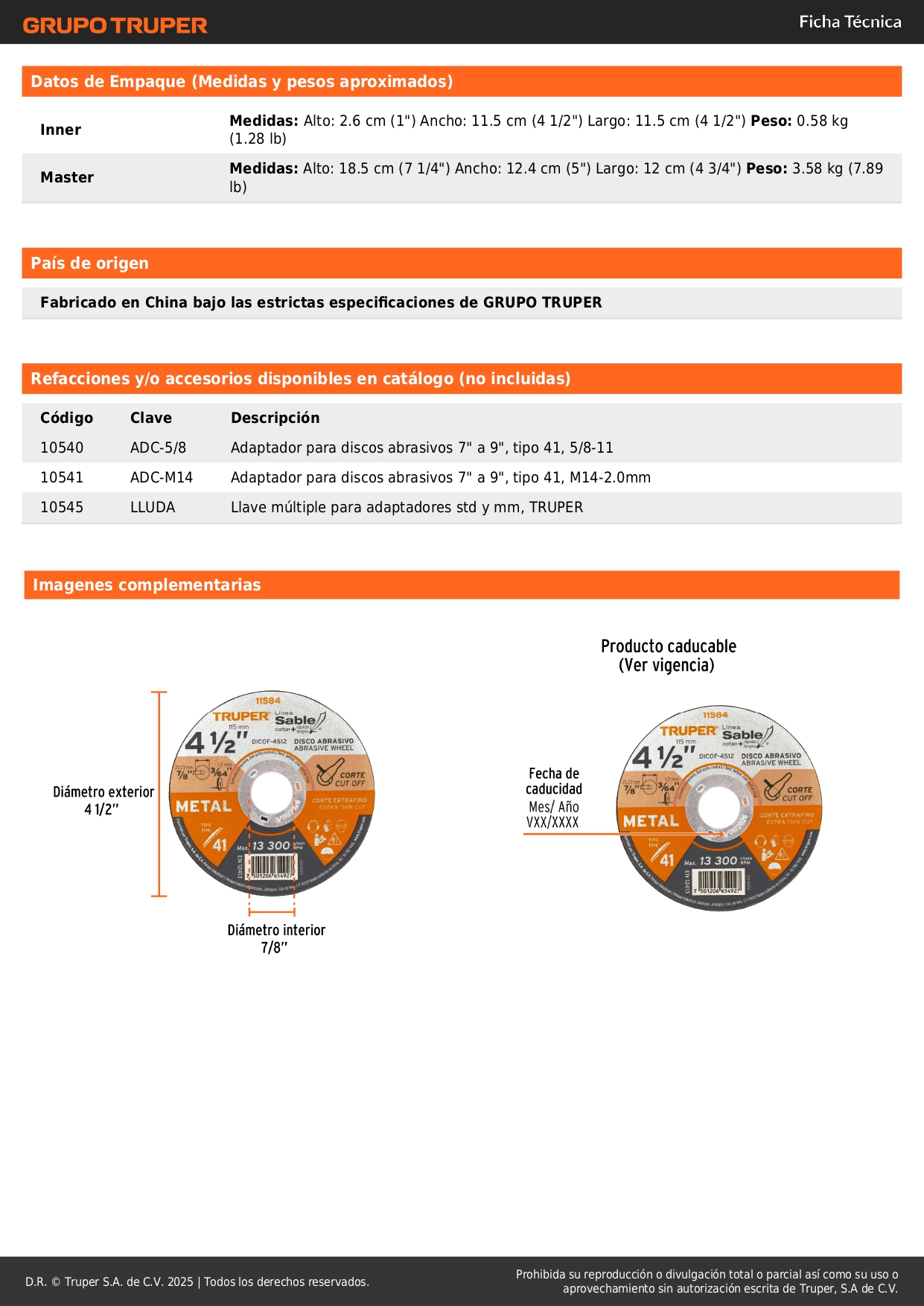 Disco Tipo 41 de 4-1/2´´ x 1.2 mm corte fino de metal, Sable Truper Stock por sucursal Stock por sucursal S/ 3.20 cantidad Agregar al carro Avísame cuando llegue -Alta durabilidad-Corte extrafino de metal-Fabricado de óxido de aluminio