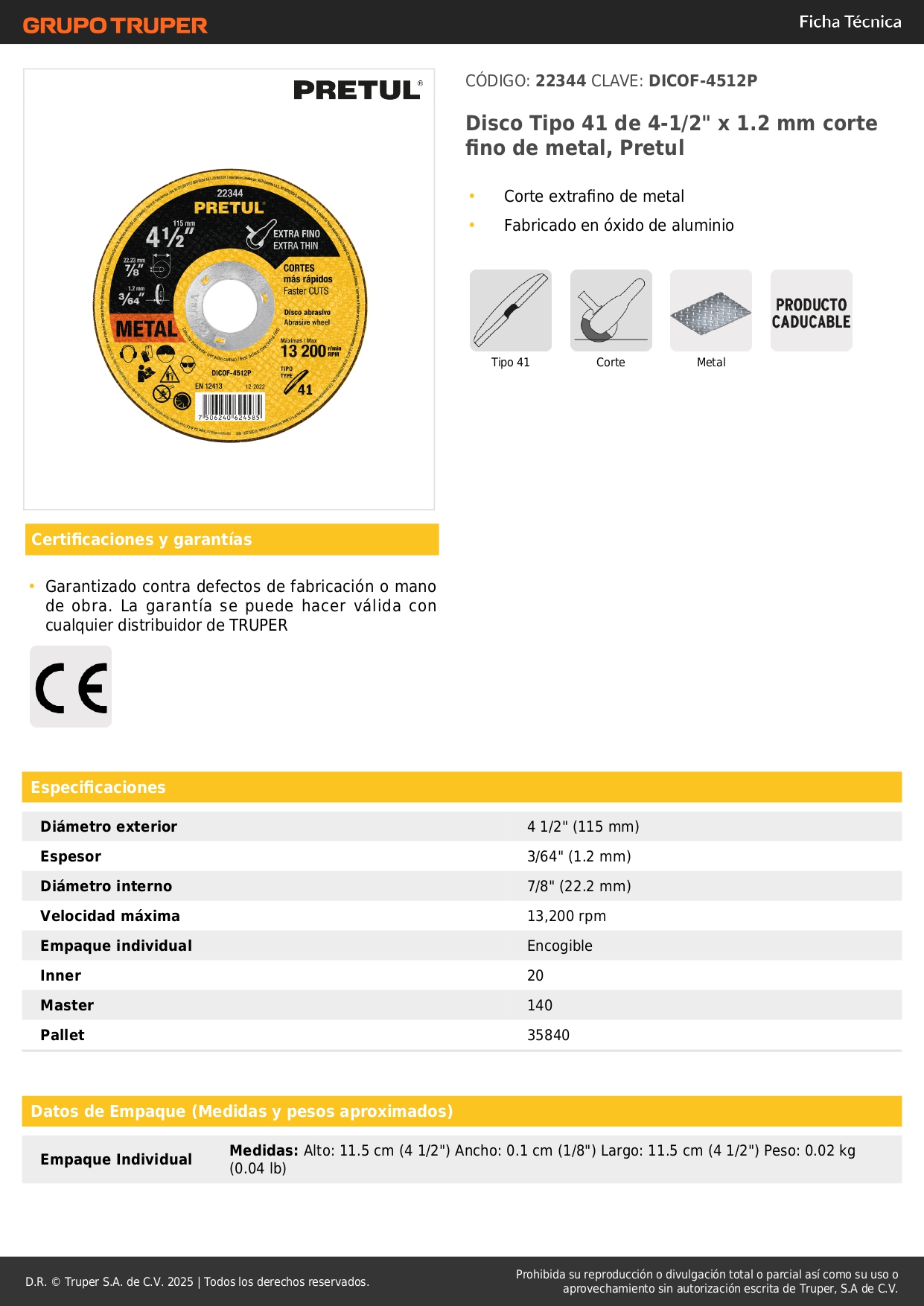 disco tipo 41 de 4-1/2'' x1.2 mm corte finoo metal Stock por sucursal Stock por sucursal S/ 2.30 cantidad Agregar al carro Avísame cuando llegue -Corte extrafino de metal-Fabricado en óxido de aluminio