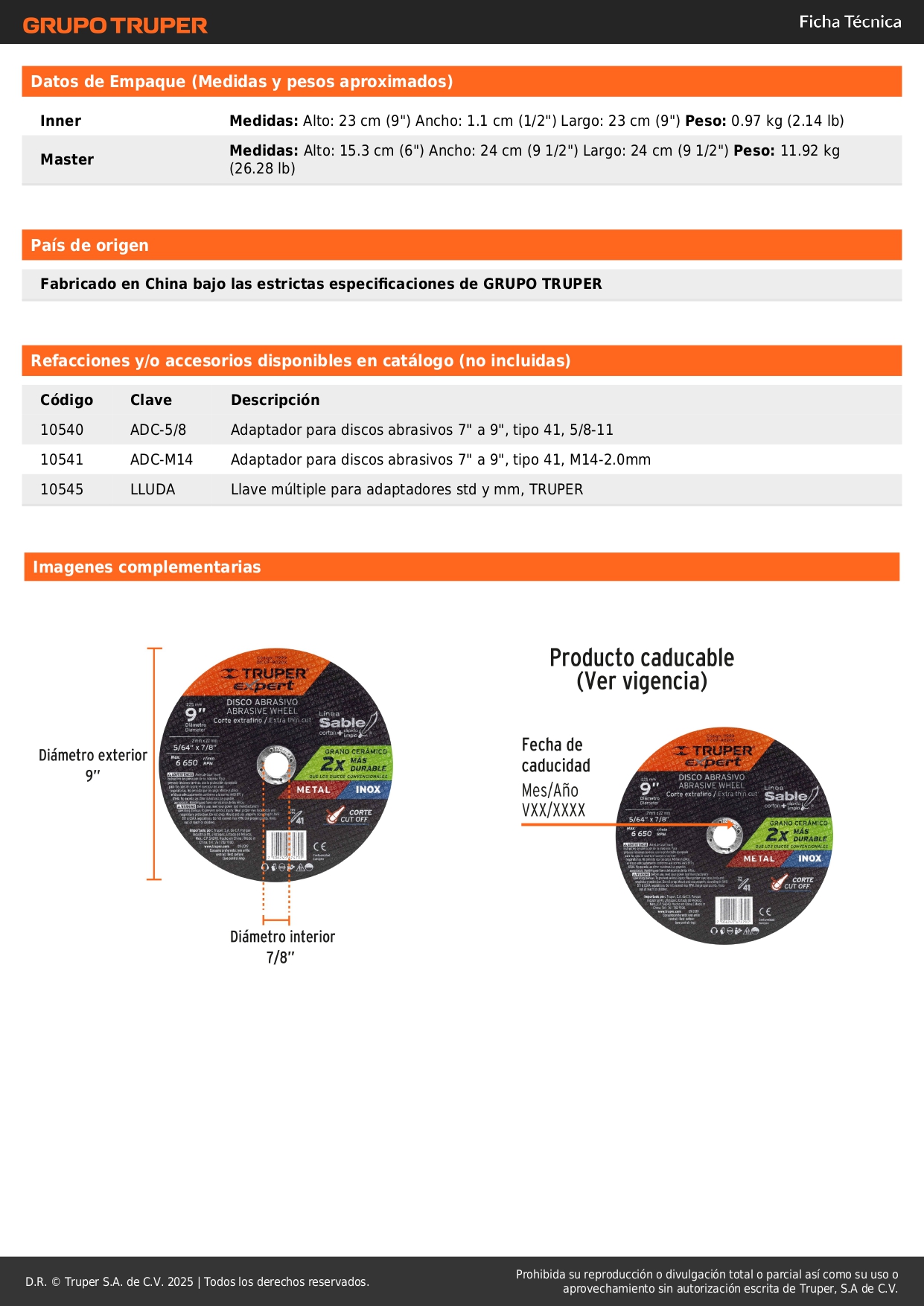 Disco Tipo 41 de 9´´ x 2 mm corte fino de metal, Expert Truper