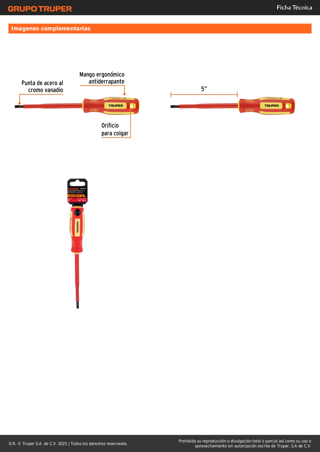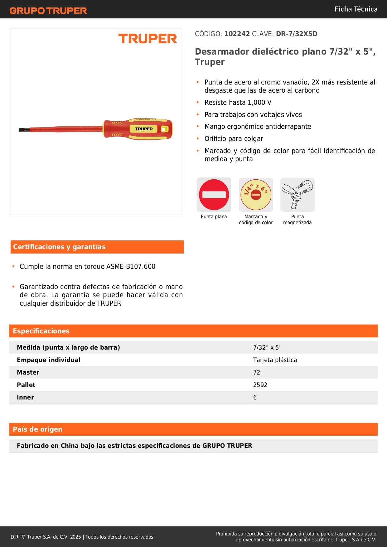 DR-7/32X5D Desarmador dieléctrico plano 7/32' x 5', Truper