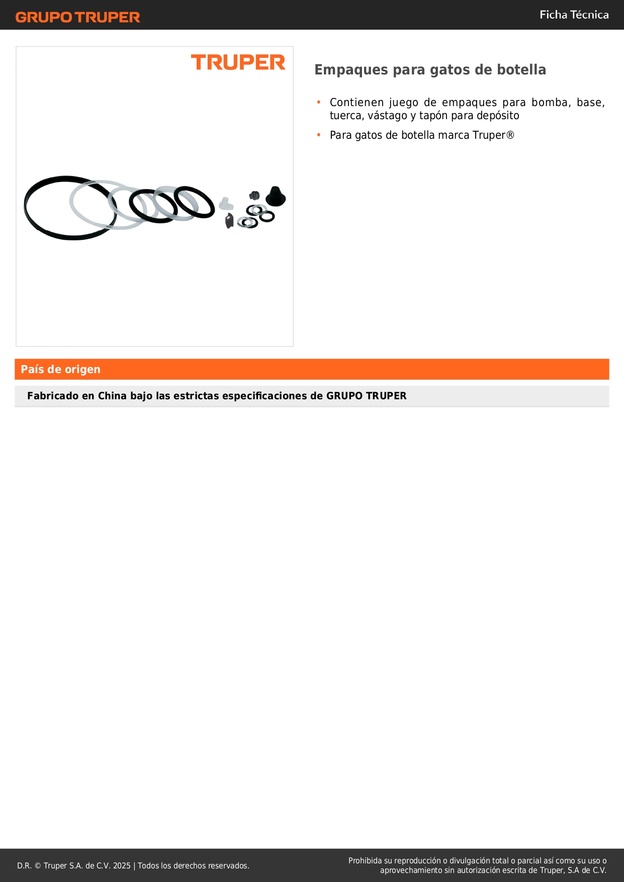 -Contienen juego de empaques para bomba, base, tuerca, vástago y tapón para depósito