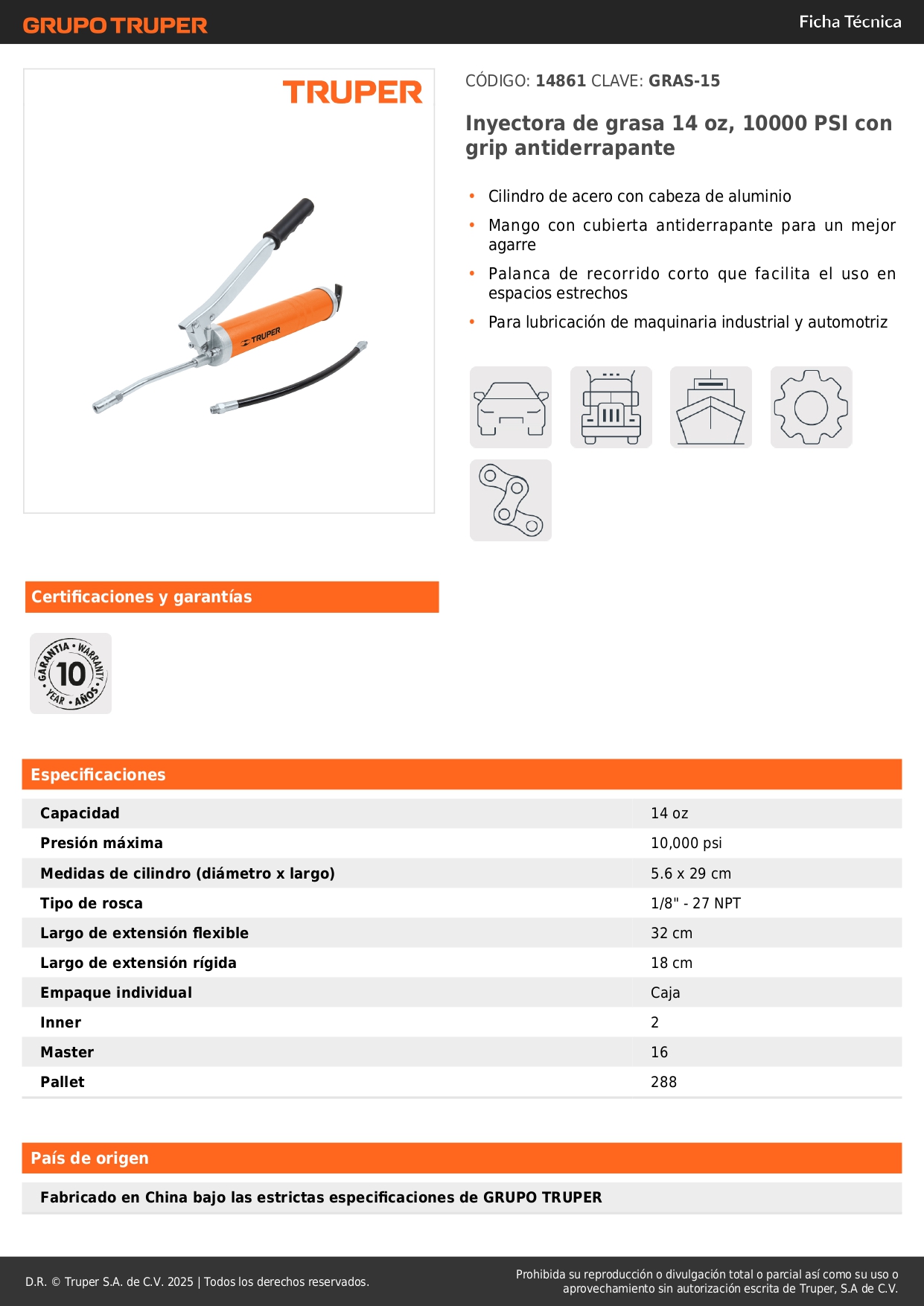 Engrasadora 14 Oz 10000 PSI con grip antiderrapante Truper