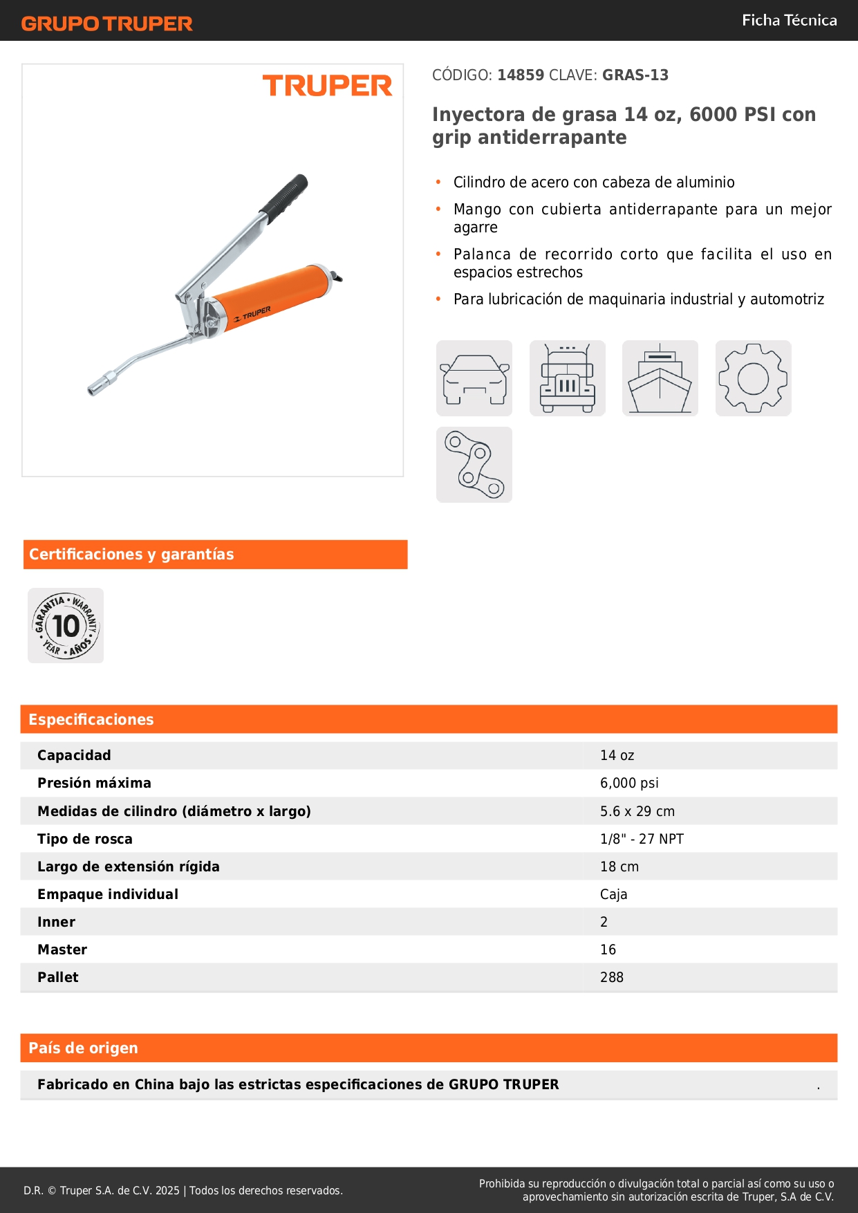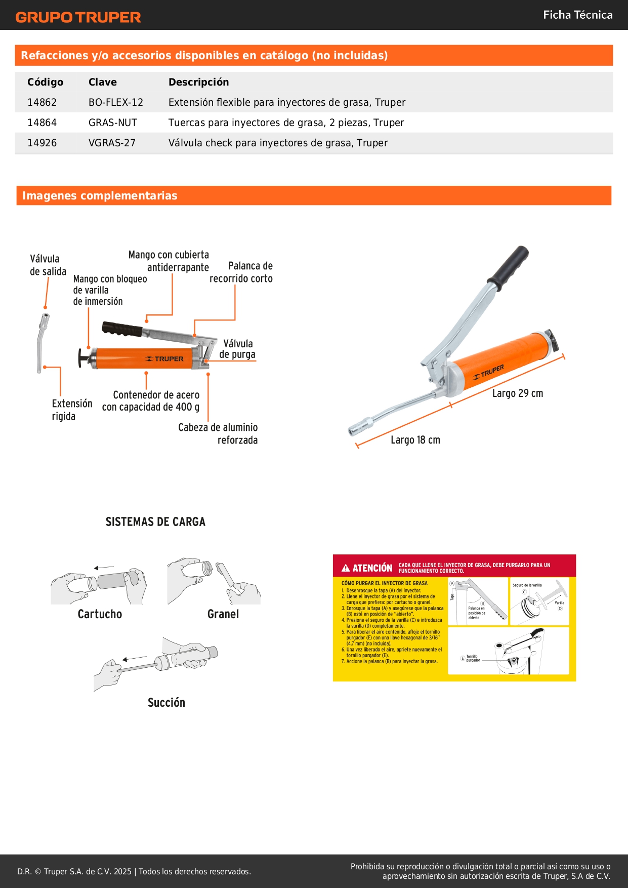 Engrasadora 400 g 6000 PSI con grip antiderrame Truper