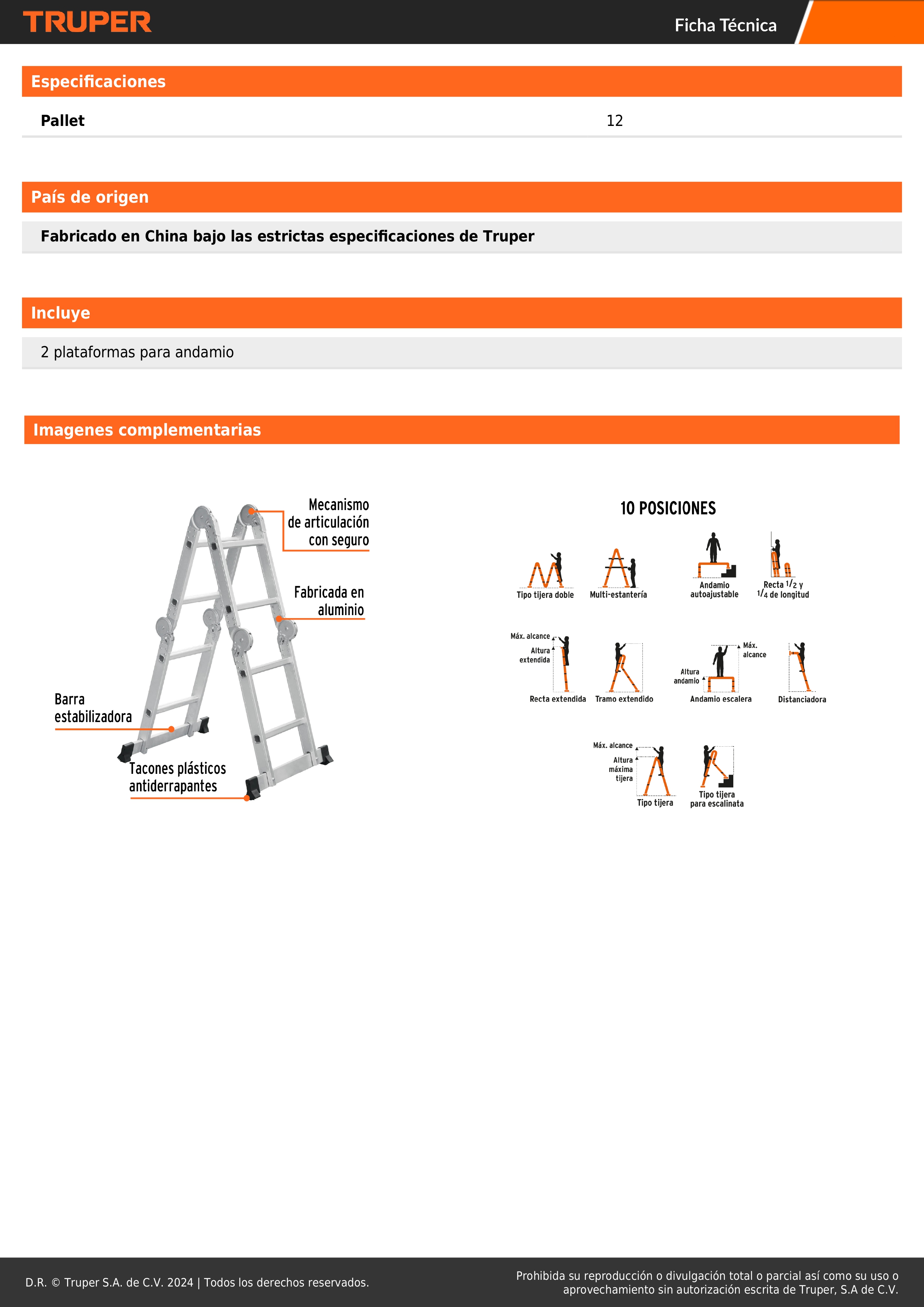 Escalera multiposición 8 peldaños soporta 200Kg Truper