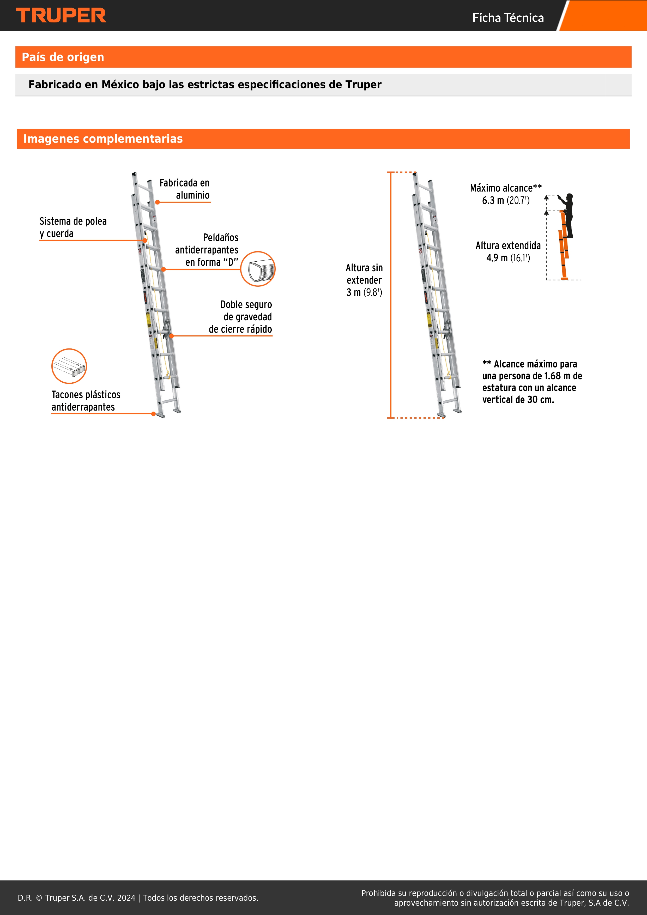 Escalera de extensión, tipo III, 20 peldaños, Truper