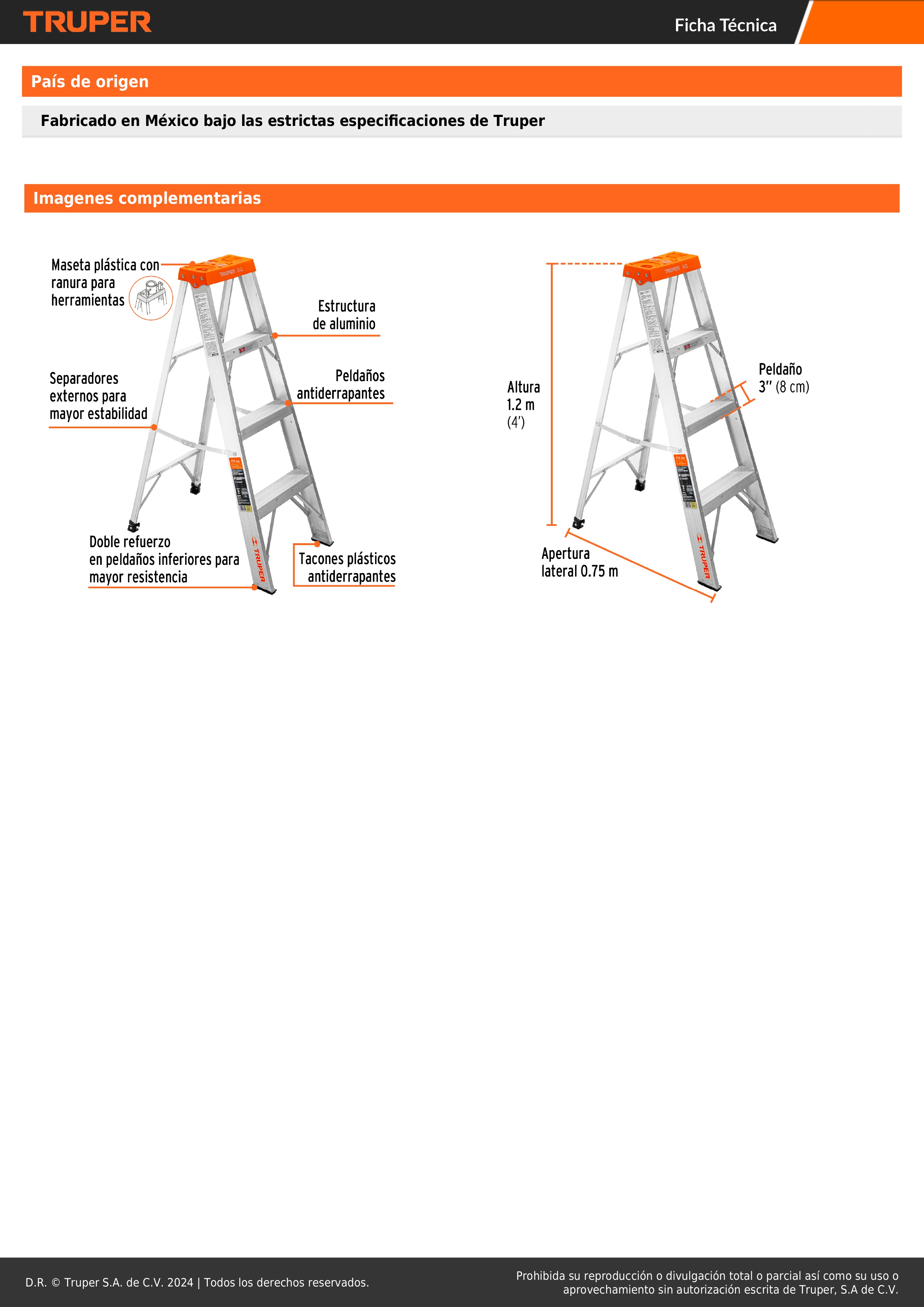 - Doble refuerzo en peldaños inferiores para mayor resistencia