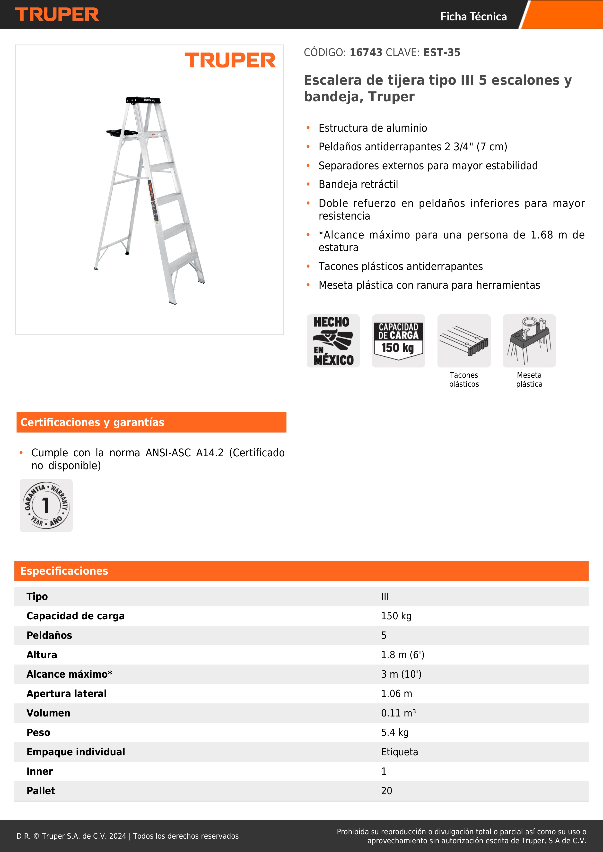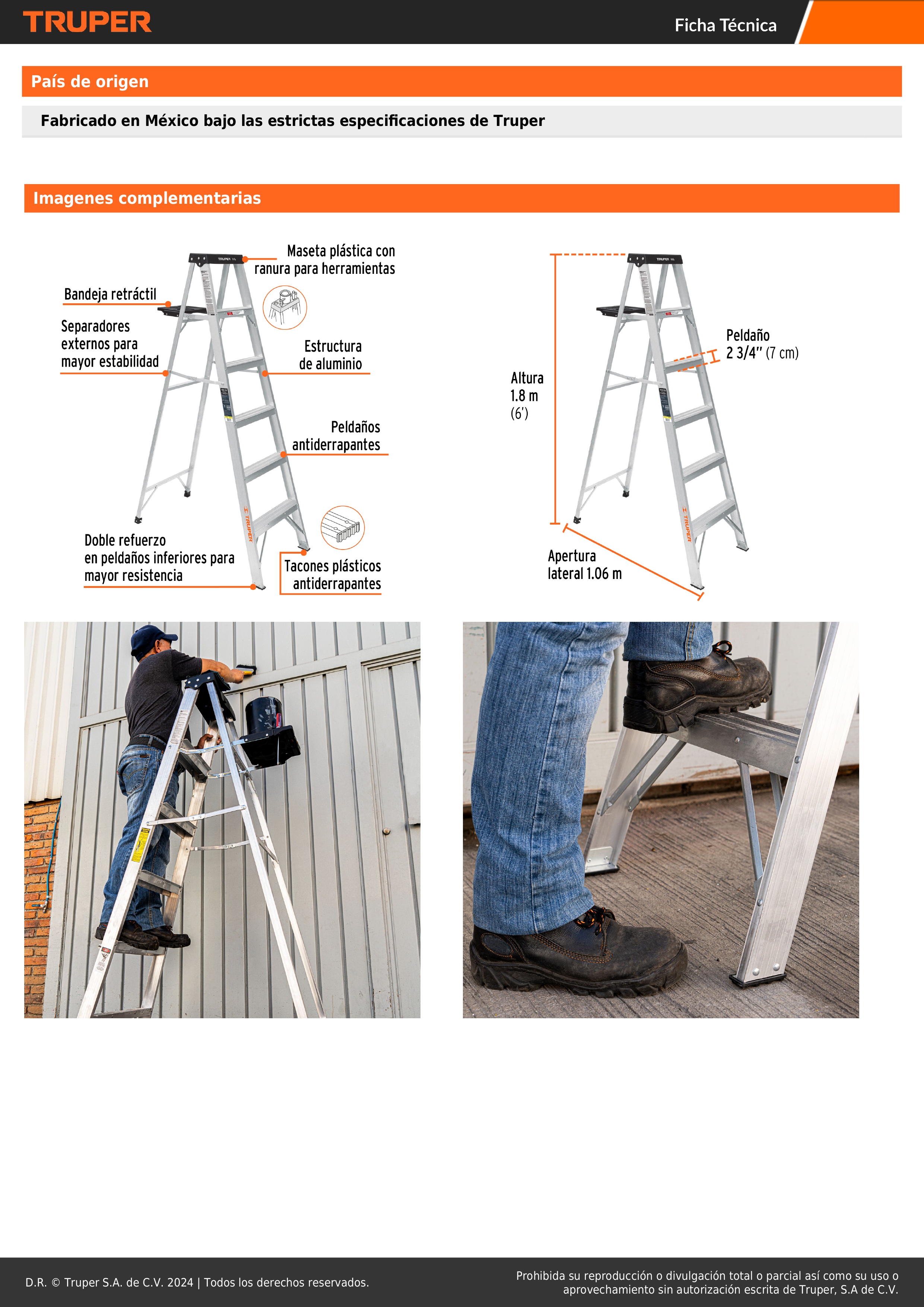 - Doble refuerzo en peldaños inferiores para mayor resistencia.