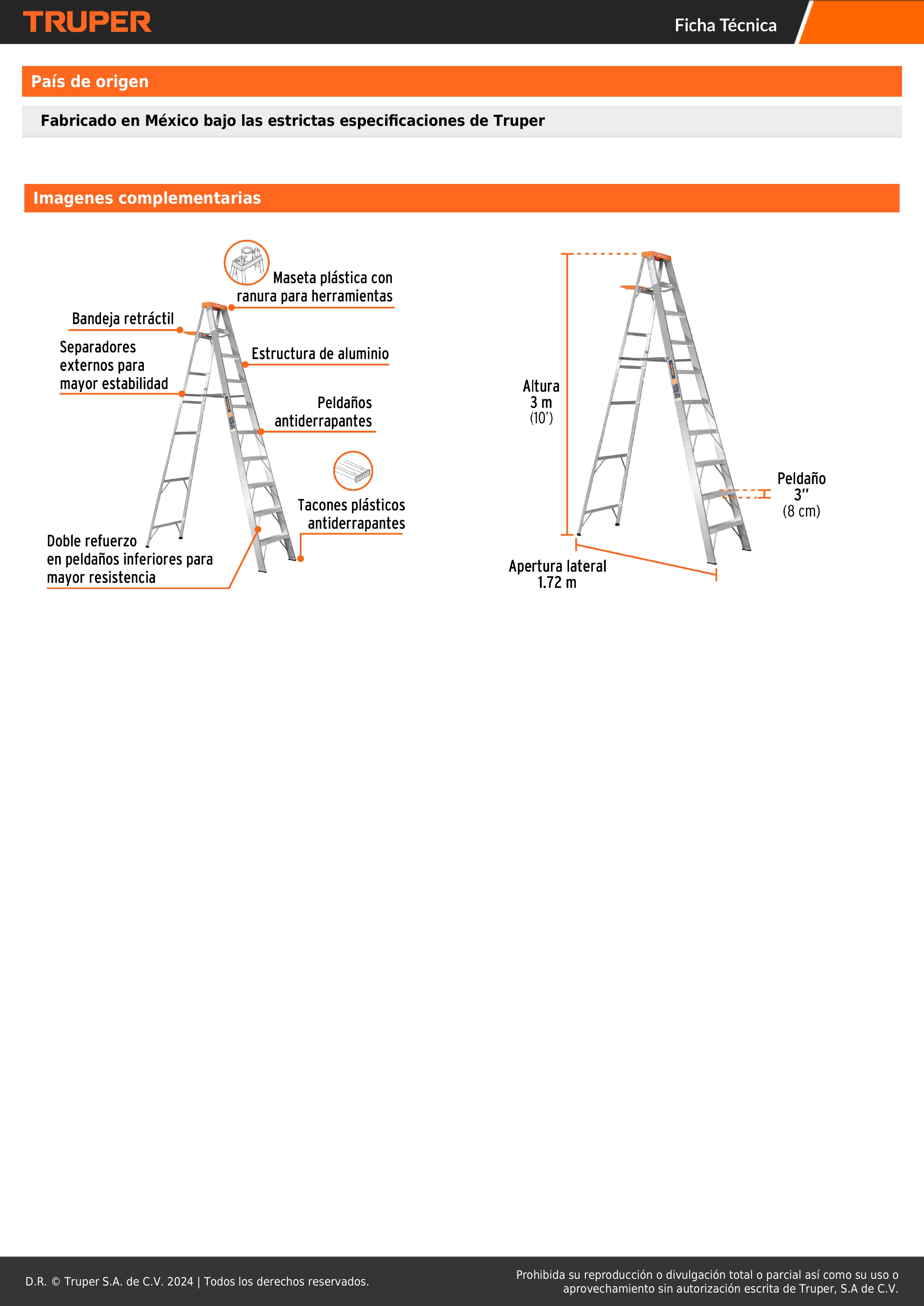 - Doble refuerzo en peldaños inferiores para mayor resistencia