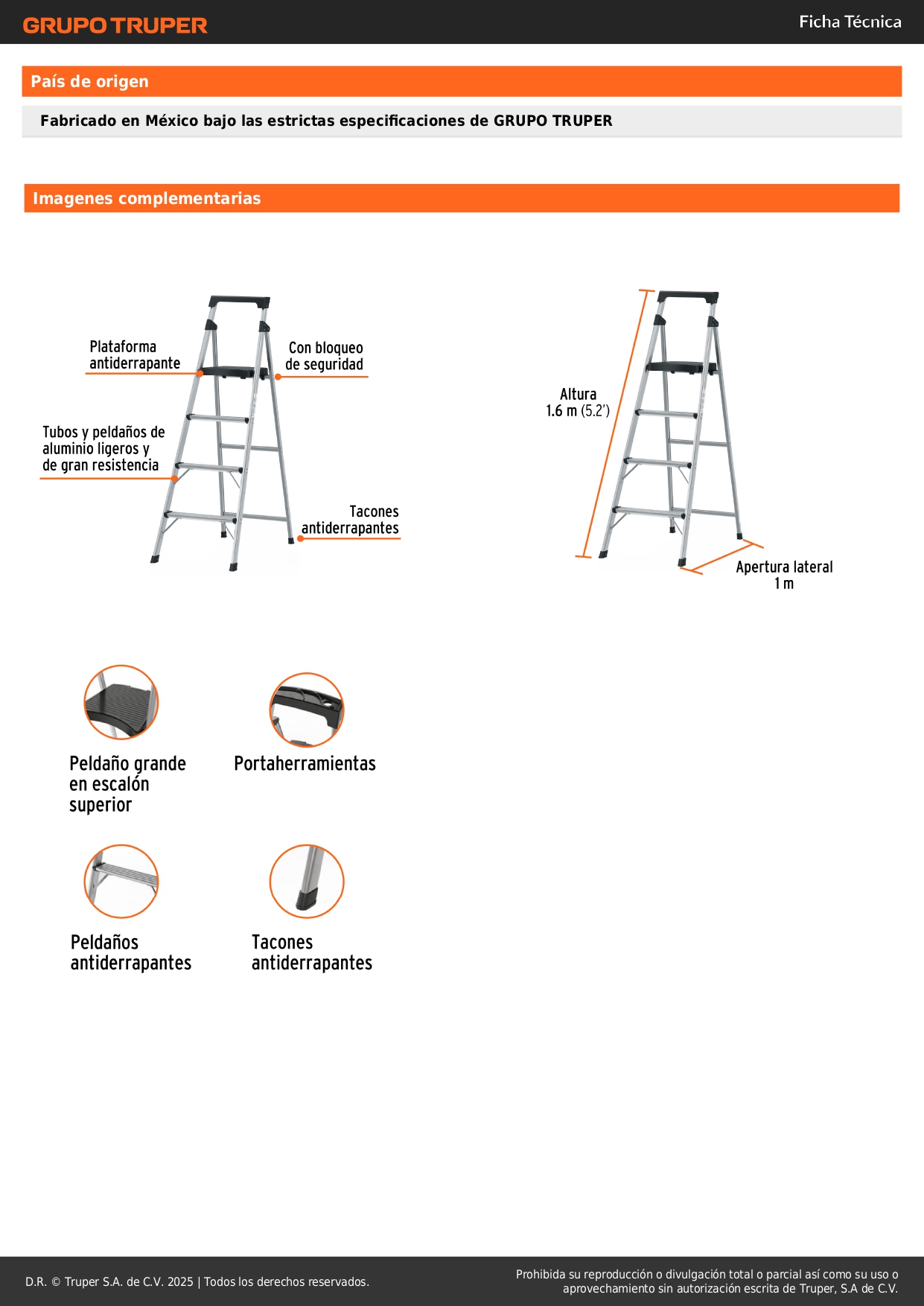 • Tubo y peldaños de aluminio, ligeros y de gran resistencia