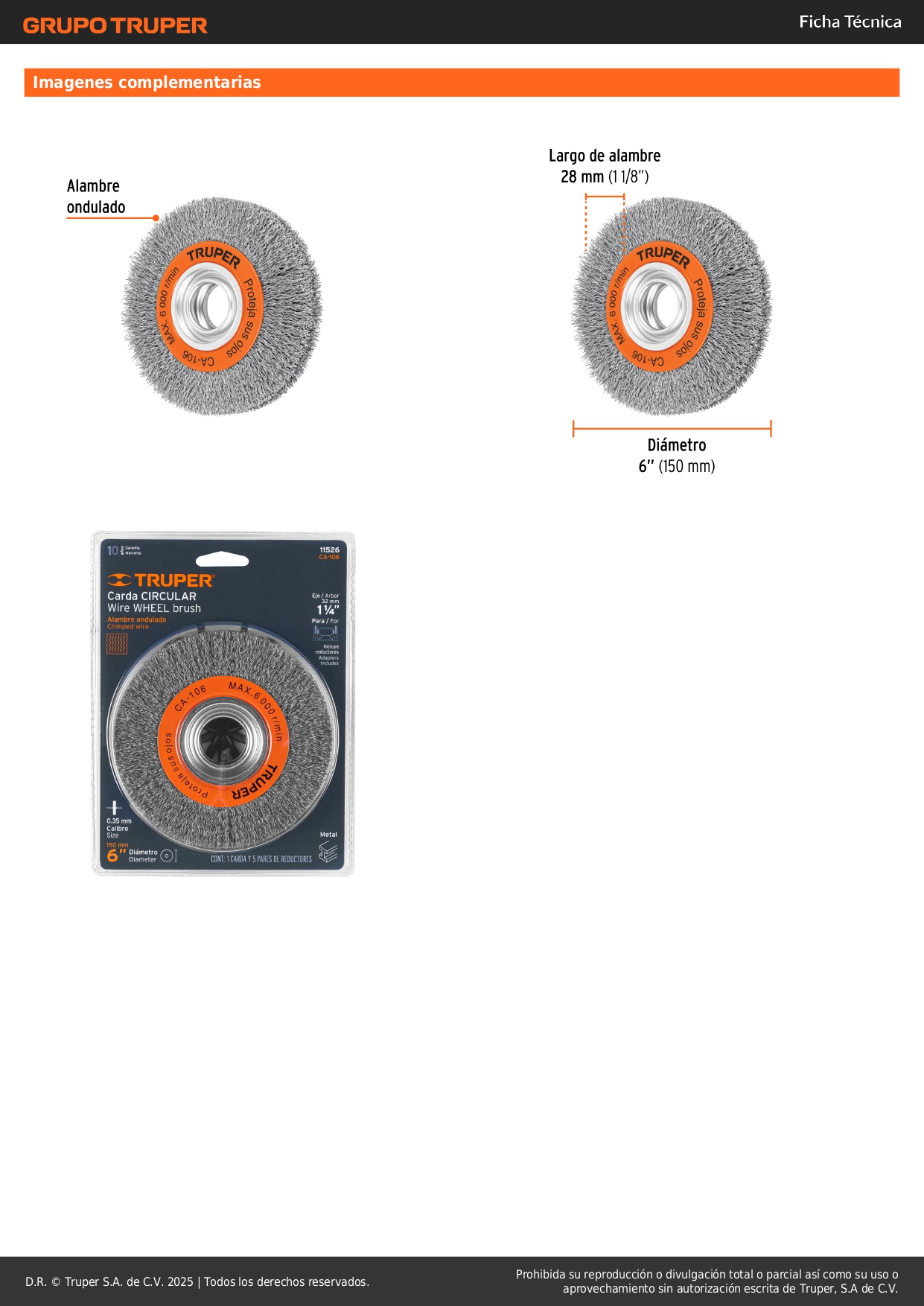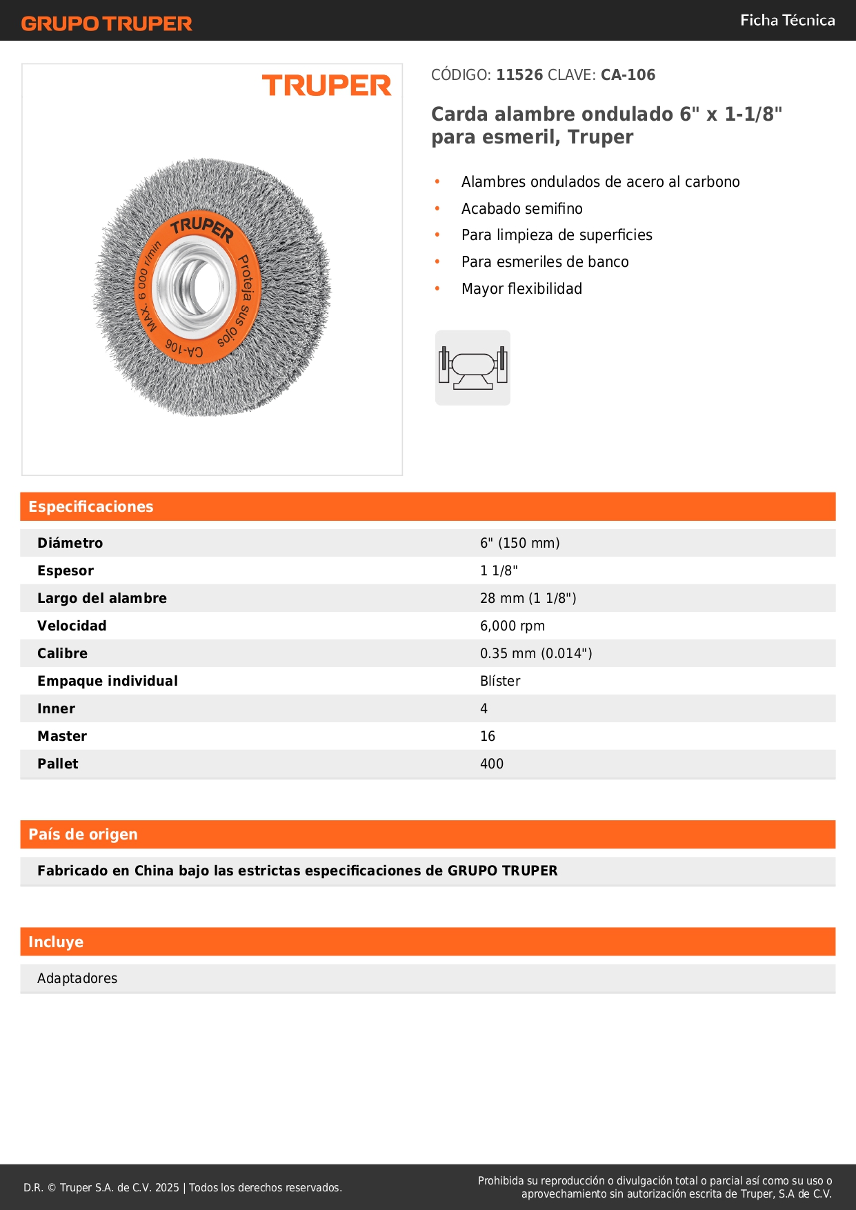 Escobilla de 6" x 1 1/8" para amoladora de banco Truper