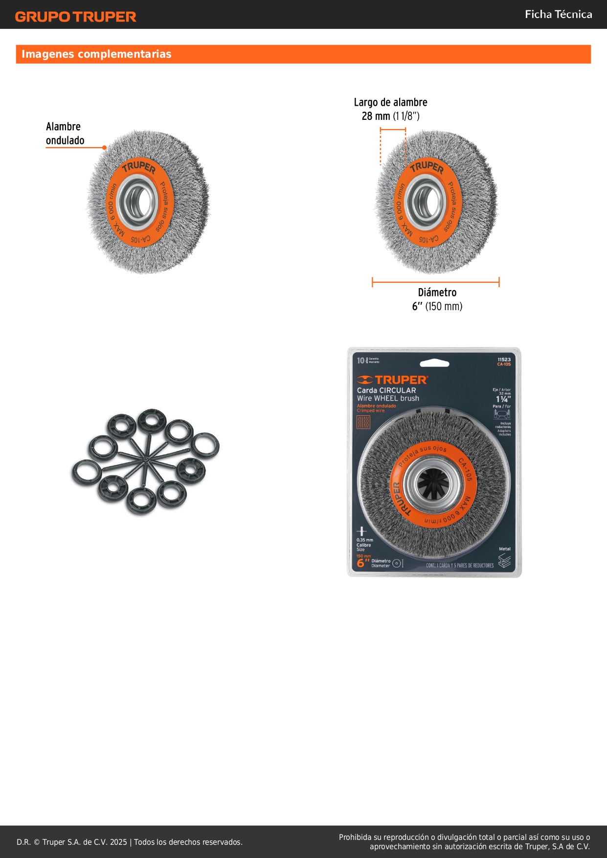 Escobilla de 6'' x 13/16'' para amoladora de banco Truper