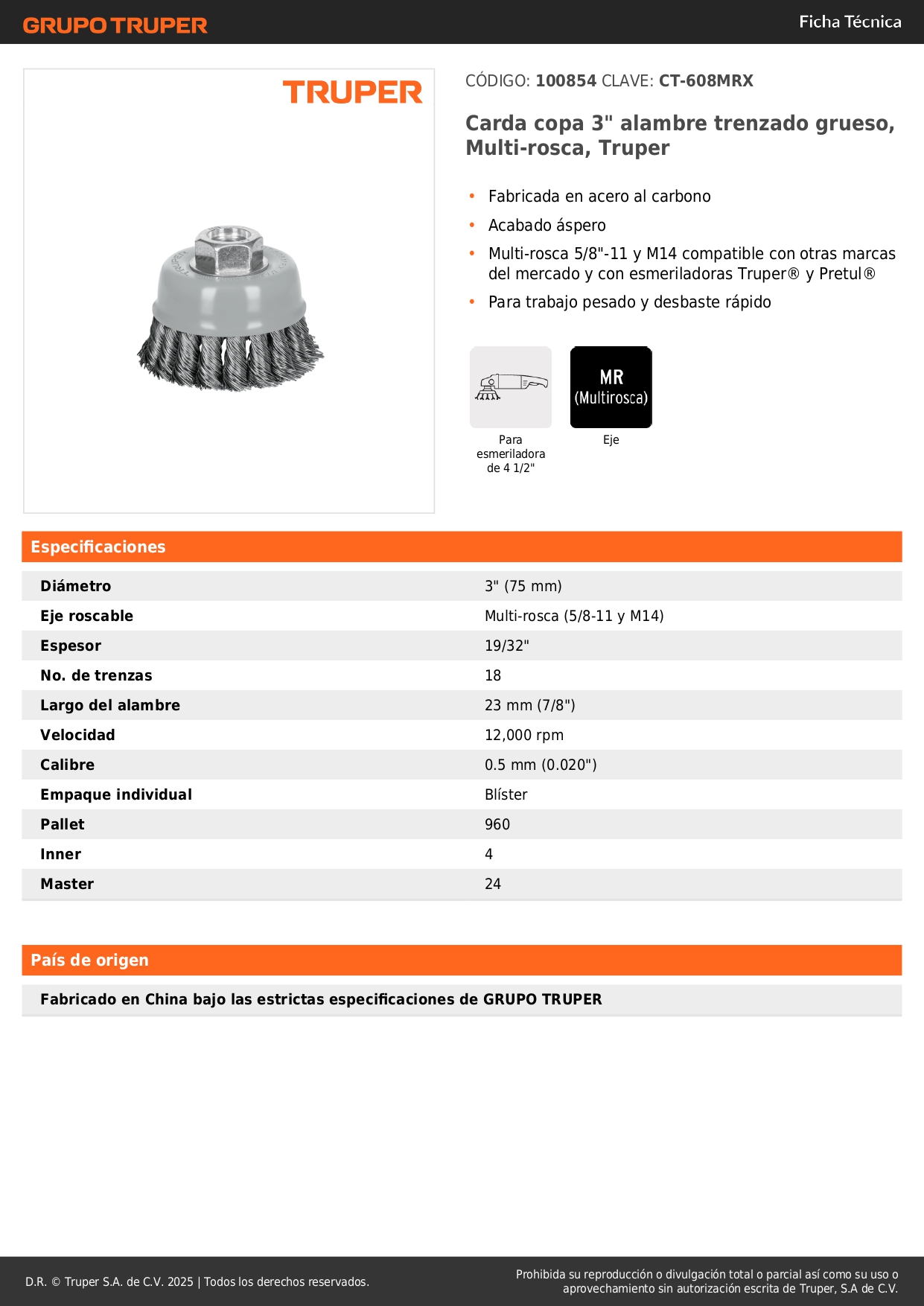 • Multi-rosca 5/8"-11 y M14 compatible con otras marcas del mercado y con esmeriladoras Truper® y Pretul®