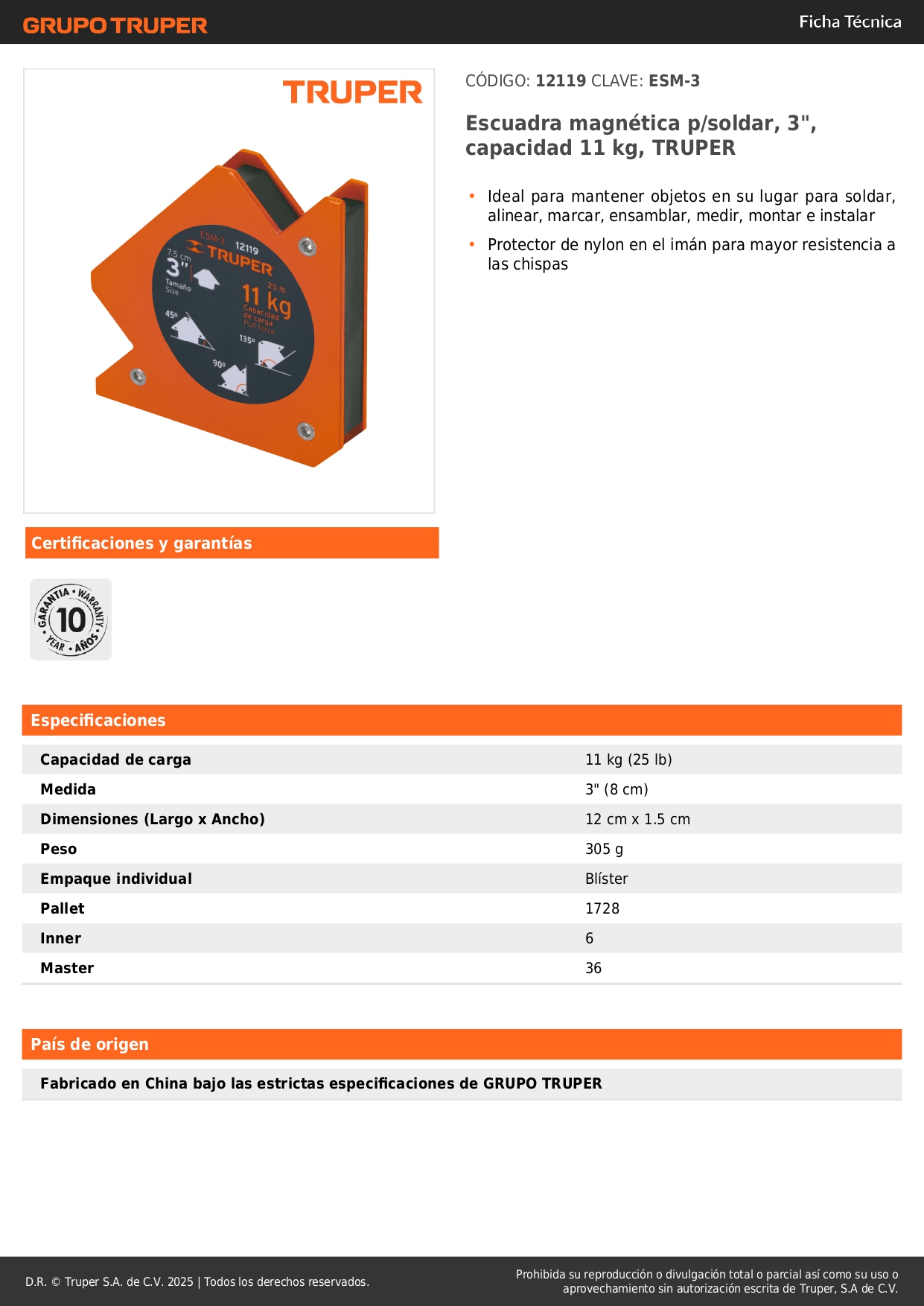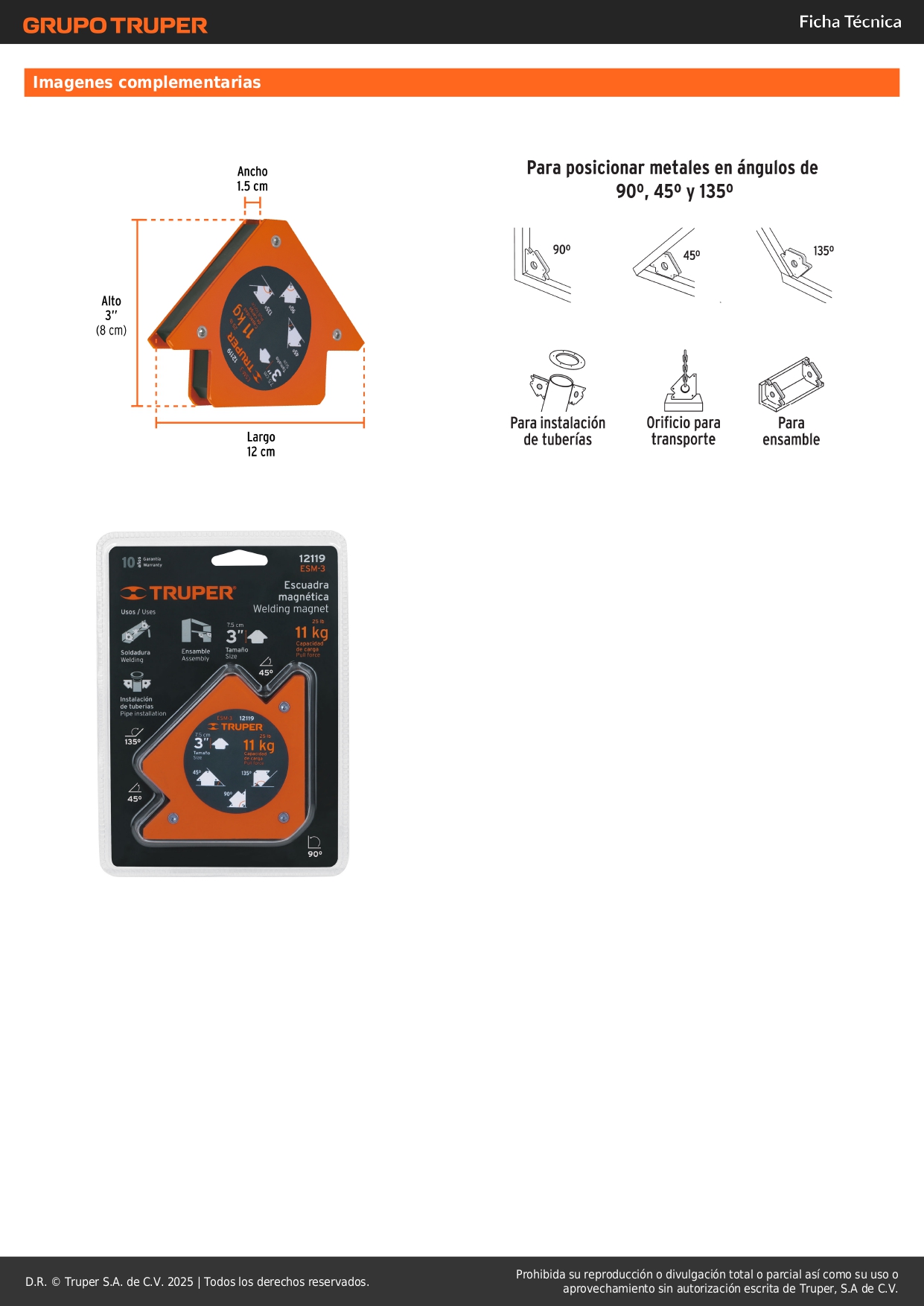 Escuadra magnética 3" para soldar, capacidad 11 kg, Truper