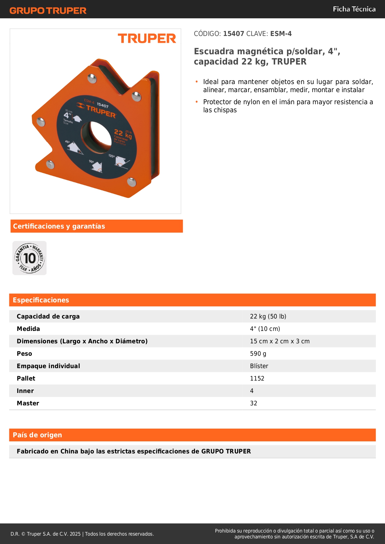 Escuadra Magnética 4" para Soldar Capacidad 23 Kg Truper
