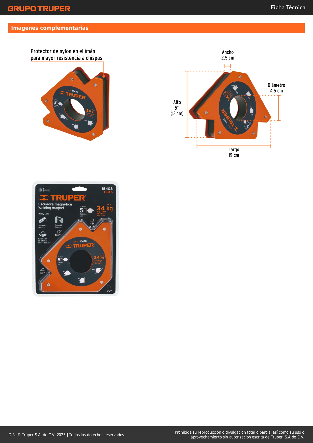 Escuadra magnética p/soldar, 5", capacidad 34 kg, TRUPER