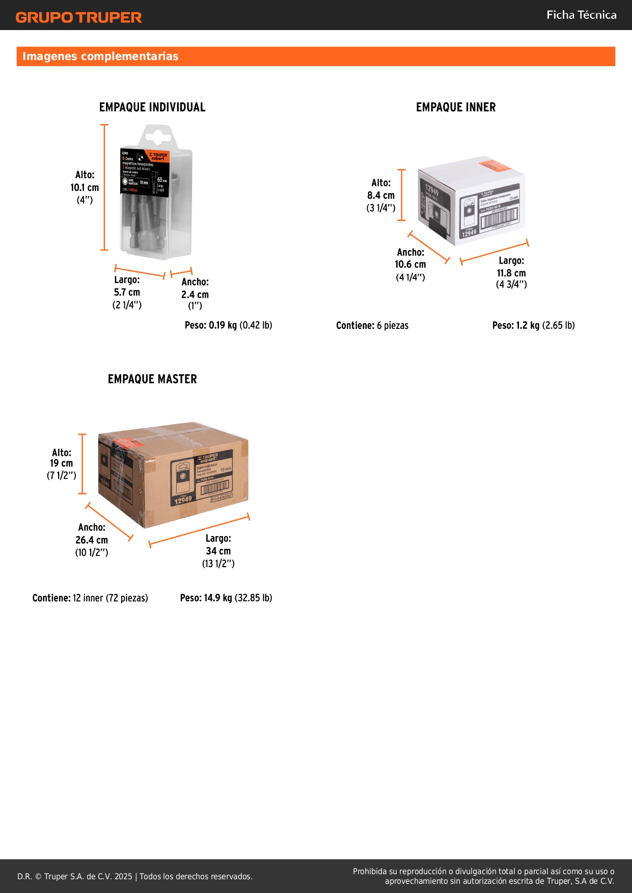 Estuche con 5 dados magnéticos de 10 mm largo 2´´, Expert Truper
