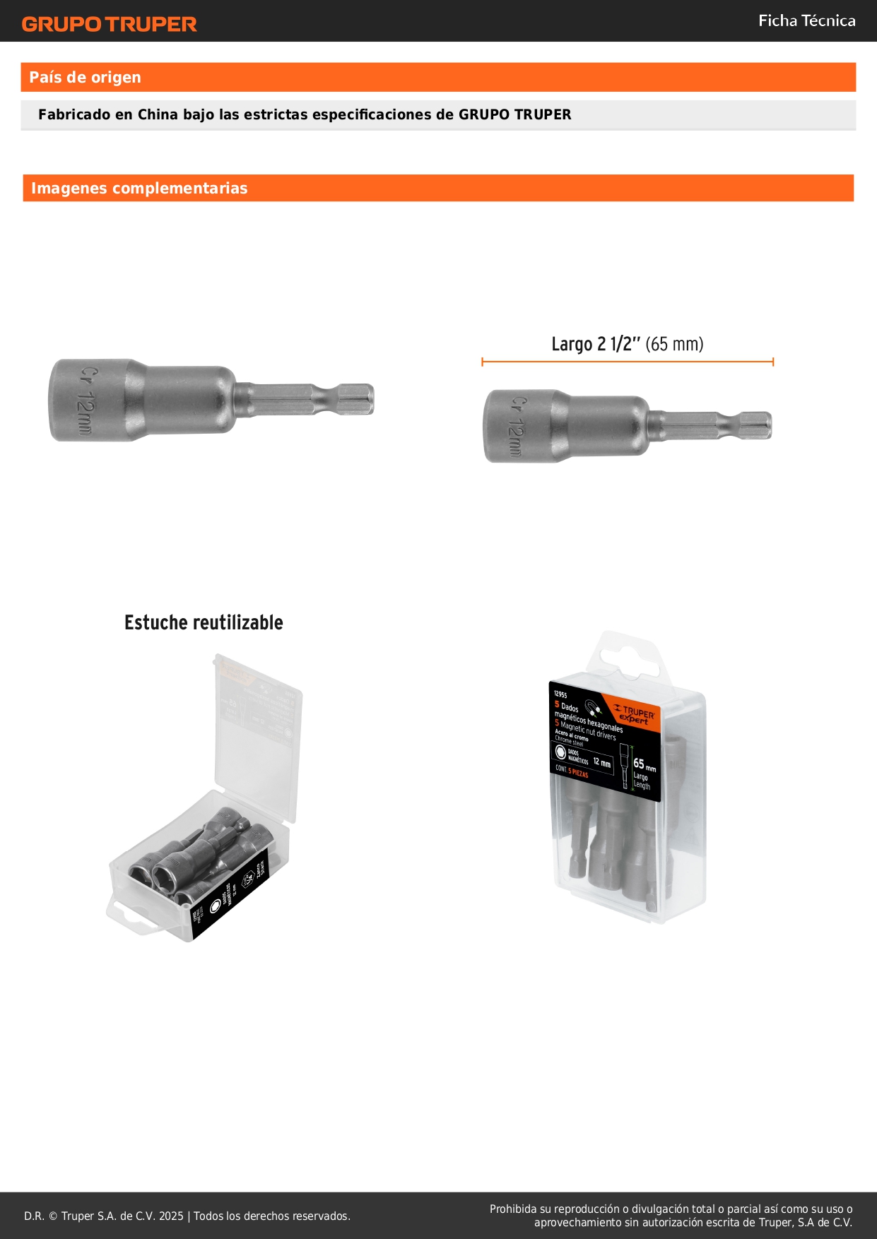 Estuche con 5 dados magnéticos de 12 mm largo 2´´, Expert Truper