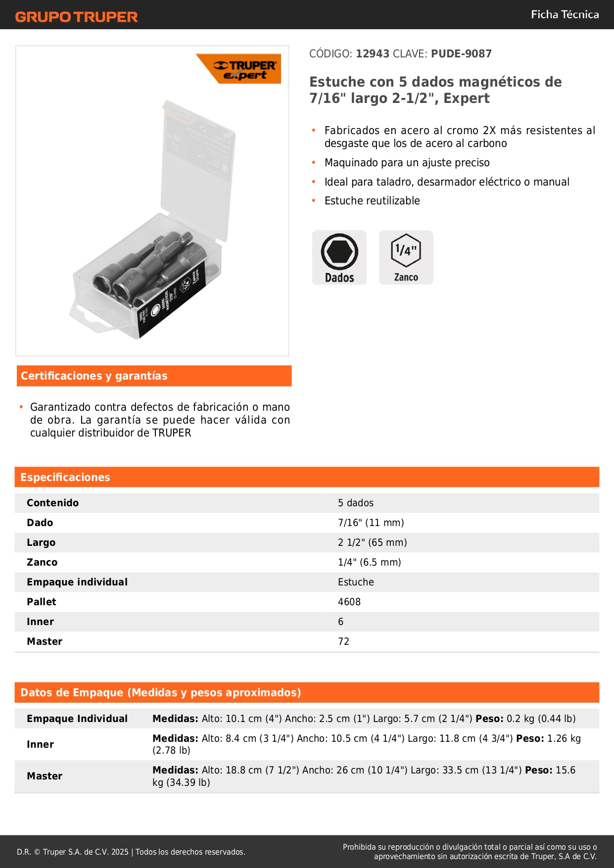 Estuche con 5 dados magnéticos de 7/16´´ largo 2´´, Expert Truper