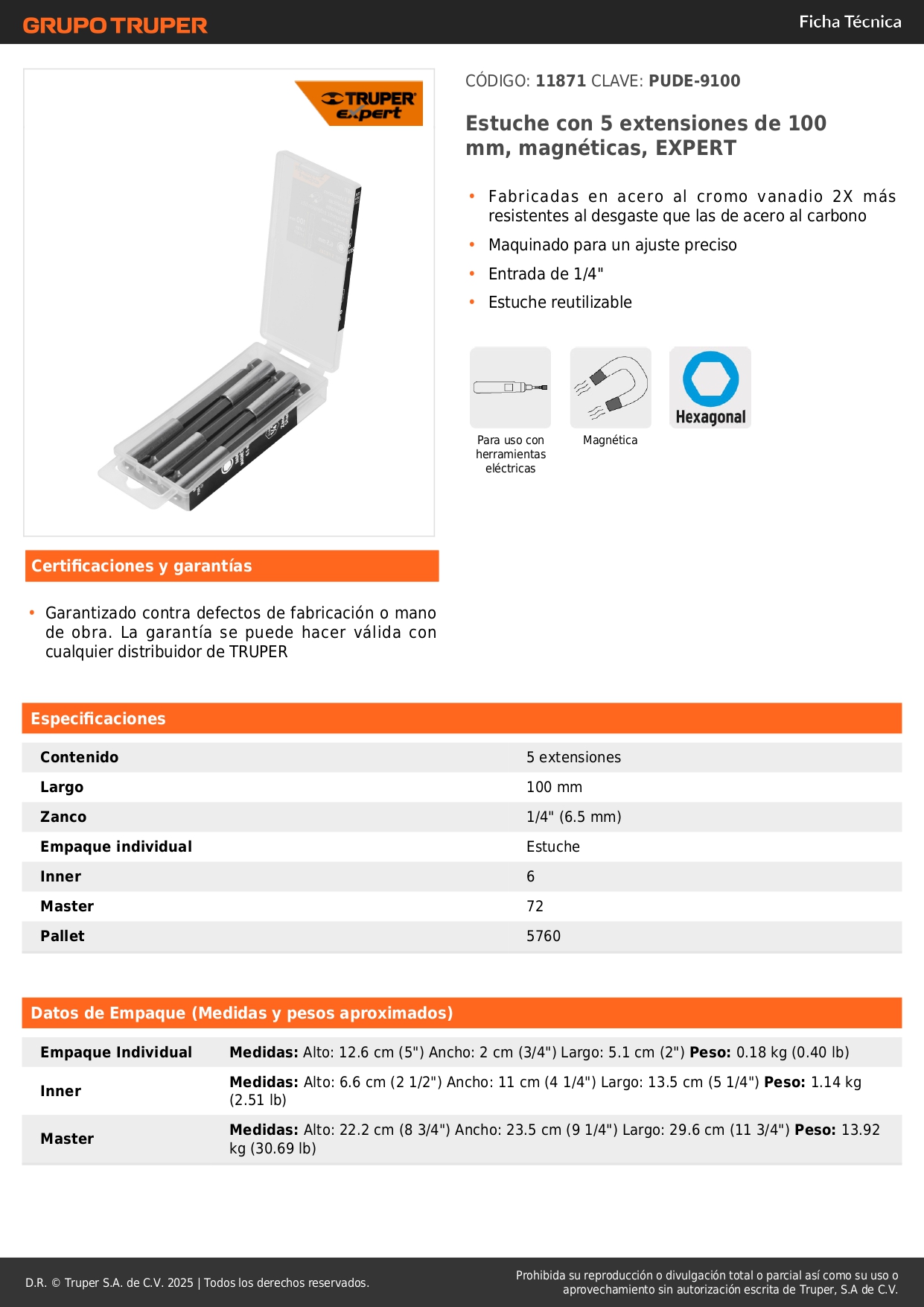 Estuche con 5 extensiones de 100 mm magnéticas Truper Expert