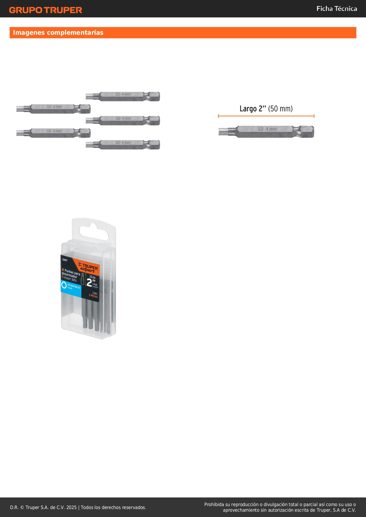 Estuche con 5 puntas hexagonales de 4 mm largo 2'' Truper Expert