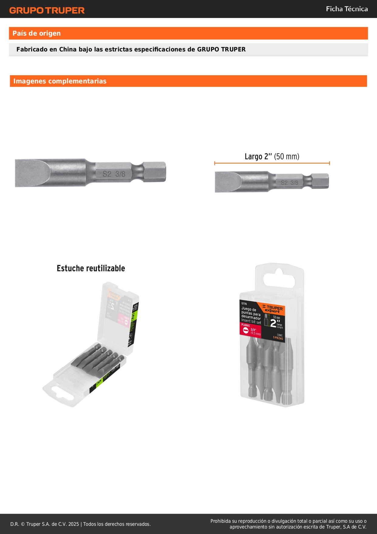 Estuche con 5 puntas planas de 3/8´´ largo 2´´, Truper Expert