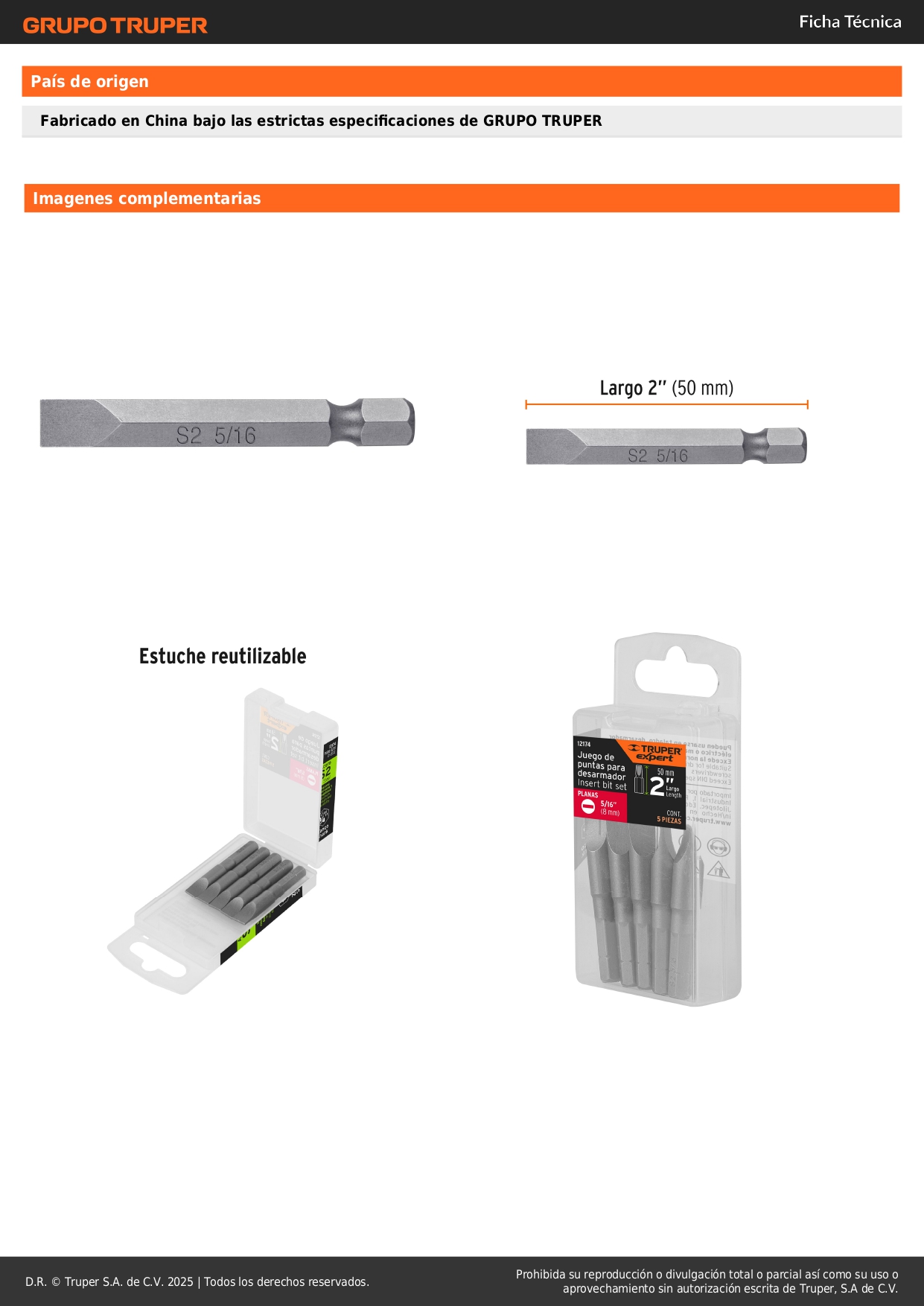 Estuche con 5 puntas planas de 5/16´´ largo 2´´, Truper Expert