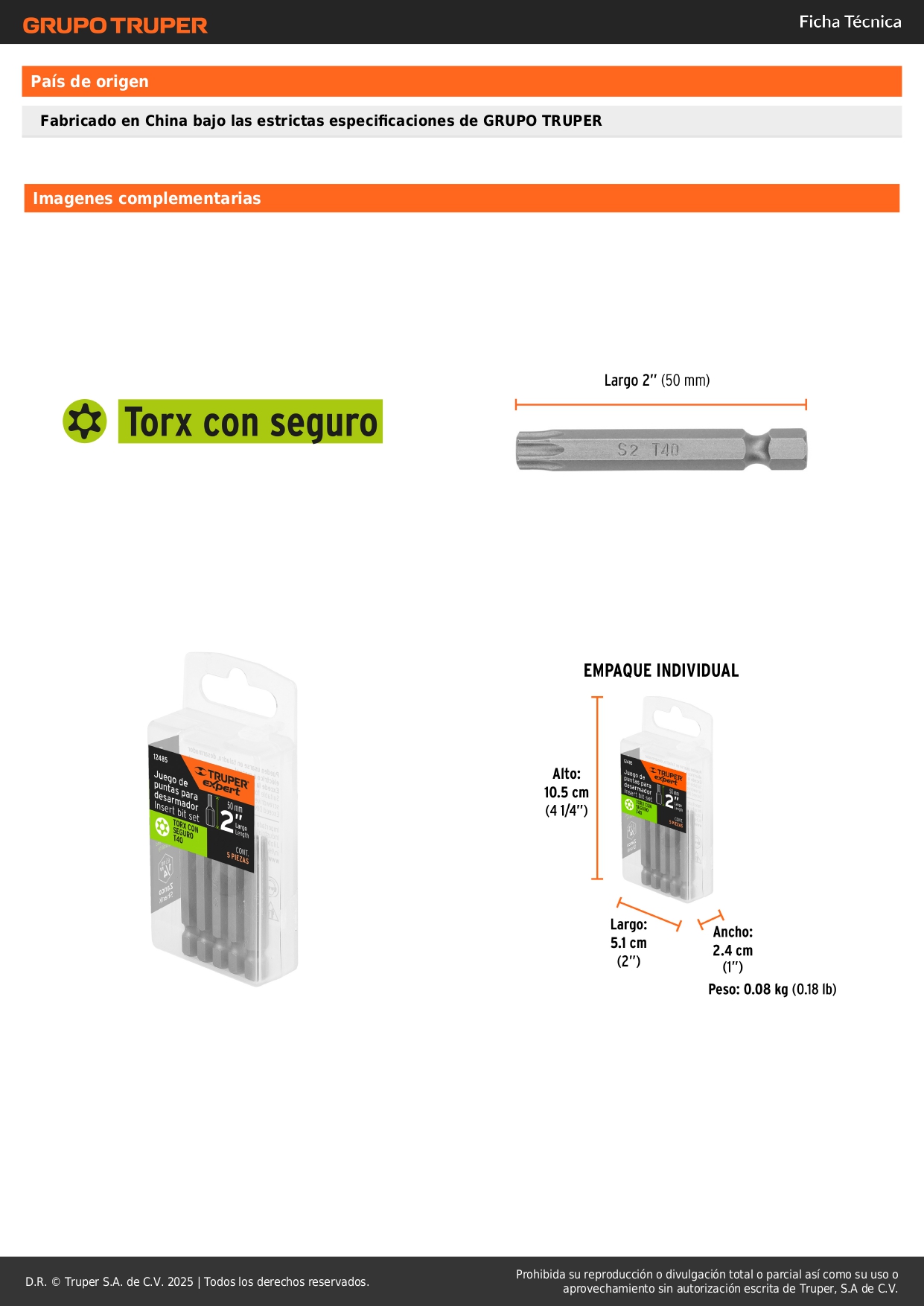 Estuche con 5 puntas torx T40 con seguro largo 2´´, Expert Truper