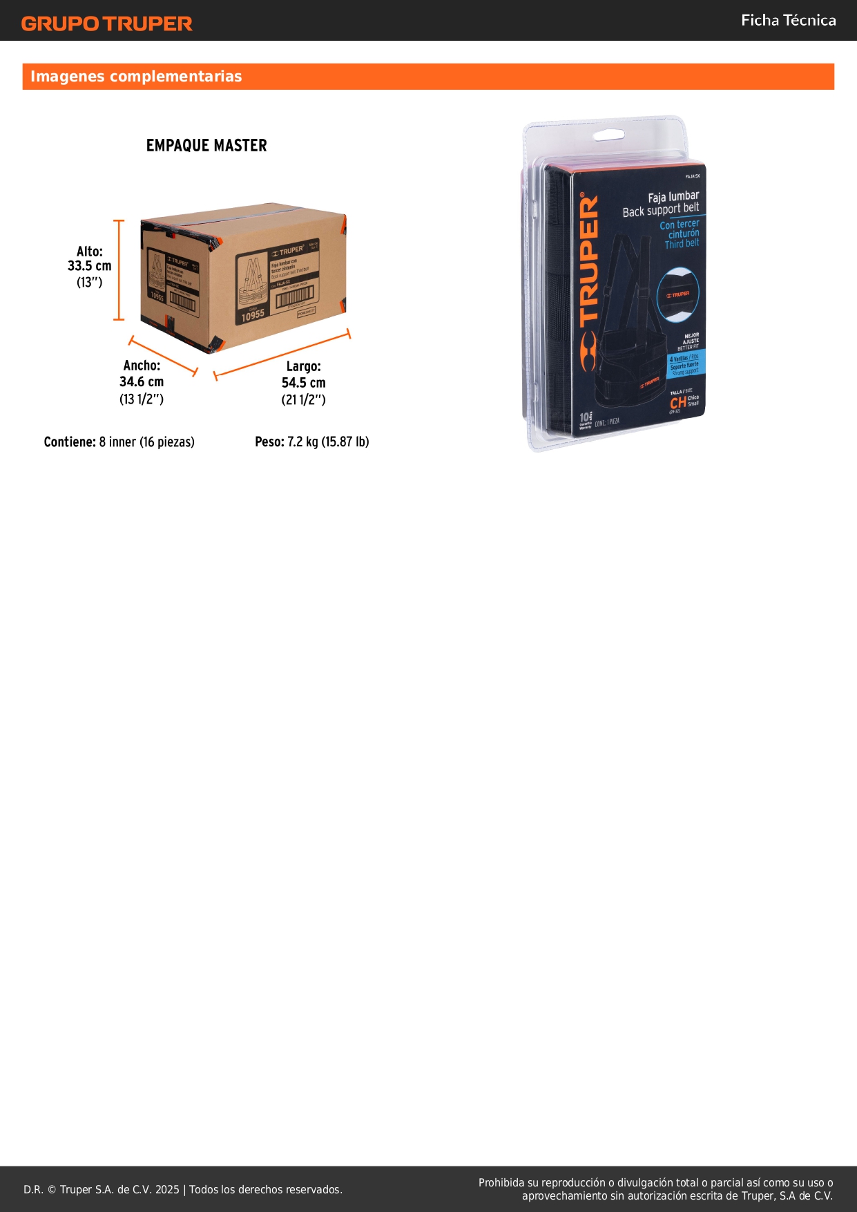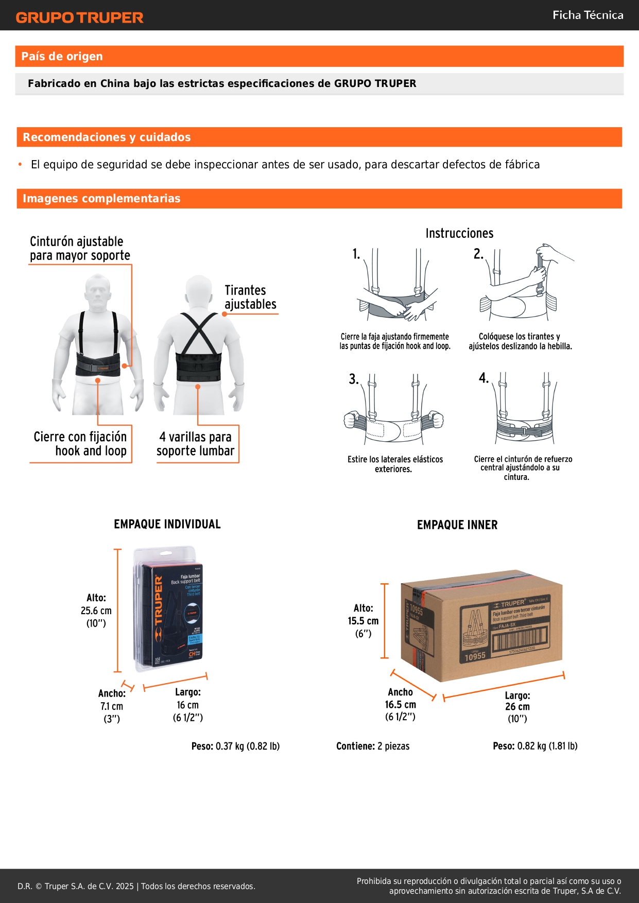 - Faja de fijación hook and loop con cinturón de refuerzo central ajustable para mayor soporte.