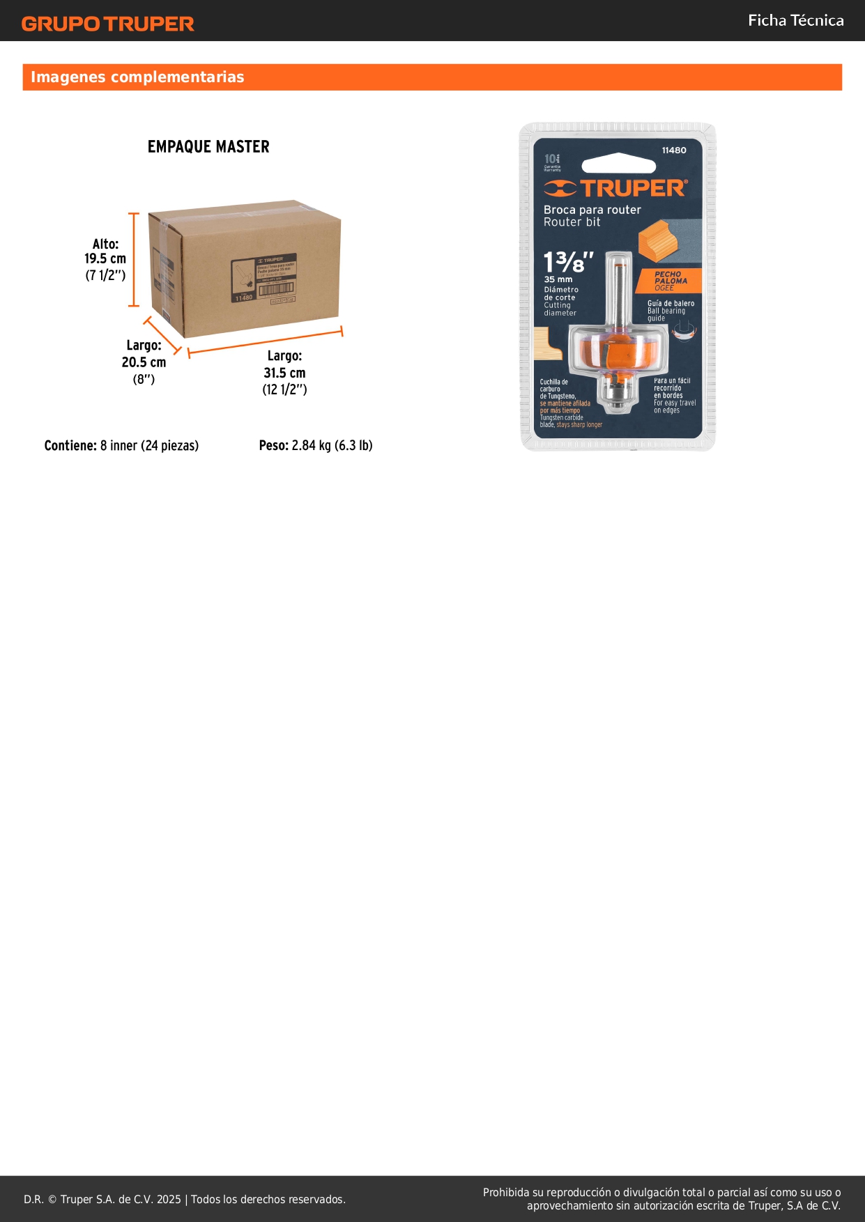 Fresa pecho paloma 1-3/8'' con rodaje Truper