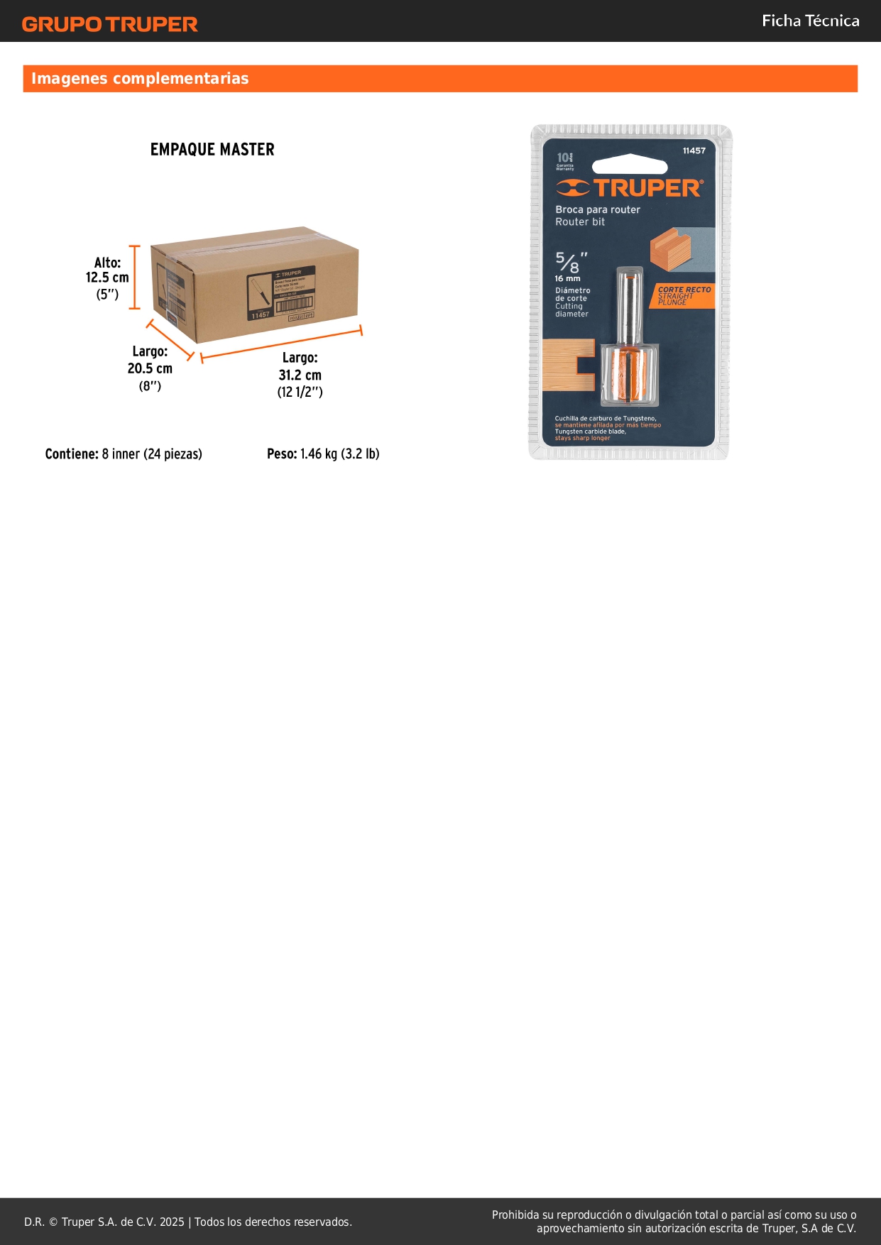 Fresa recta 2 filos, 5/8´´, Truper