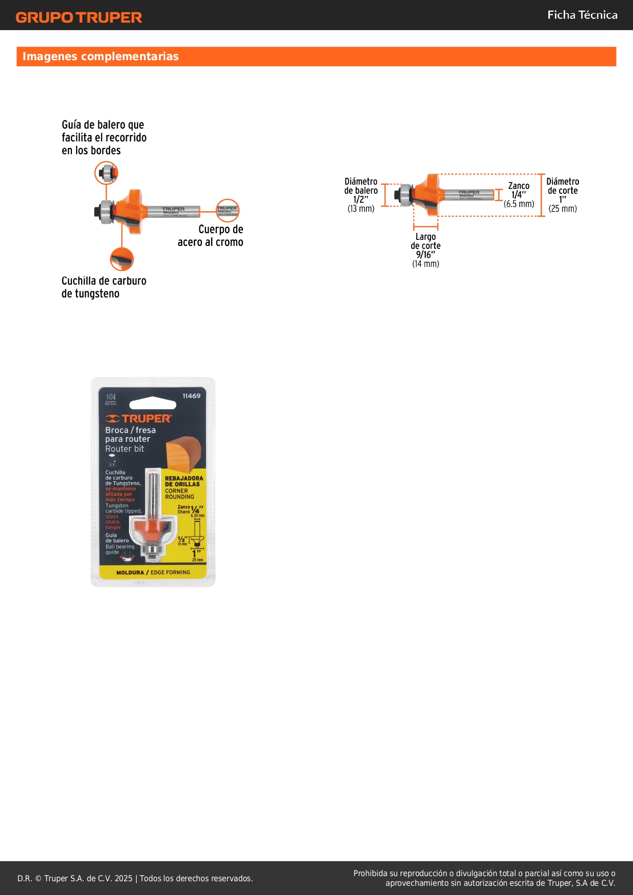 Fresa redondeadora, 1´´ con rodaje, Truper