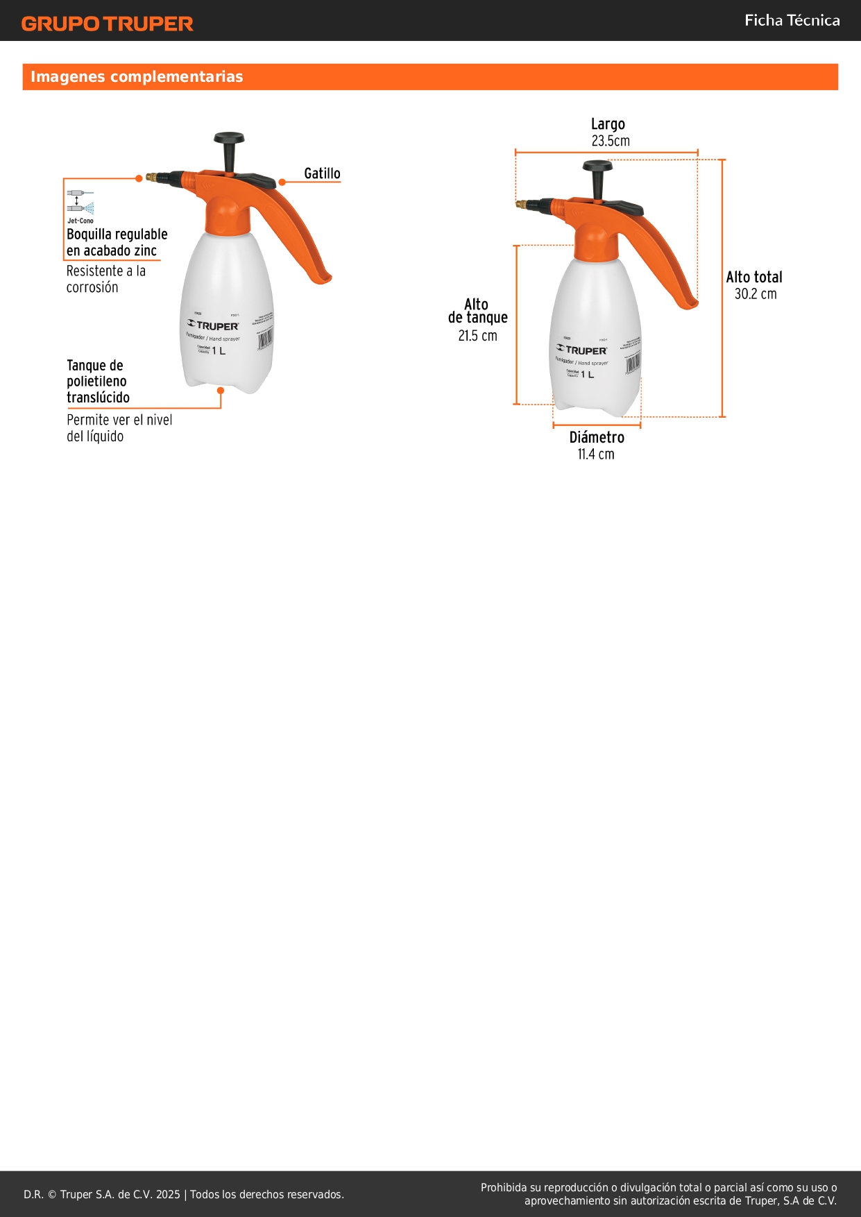 • Útil para rociar plaguicidas y fungicidas