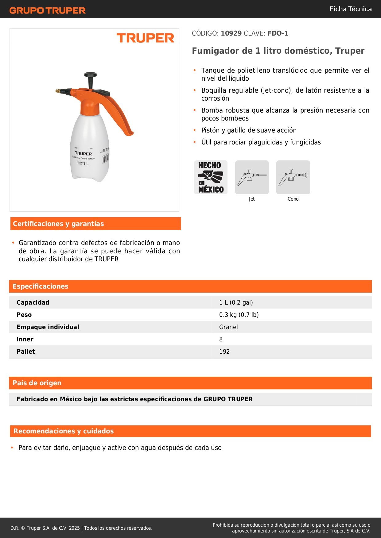 - Fumigador de 1 litro doméstico, Truper