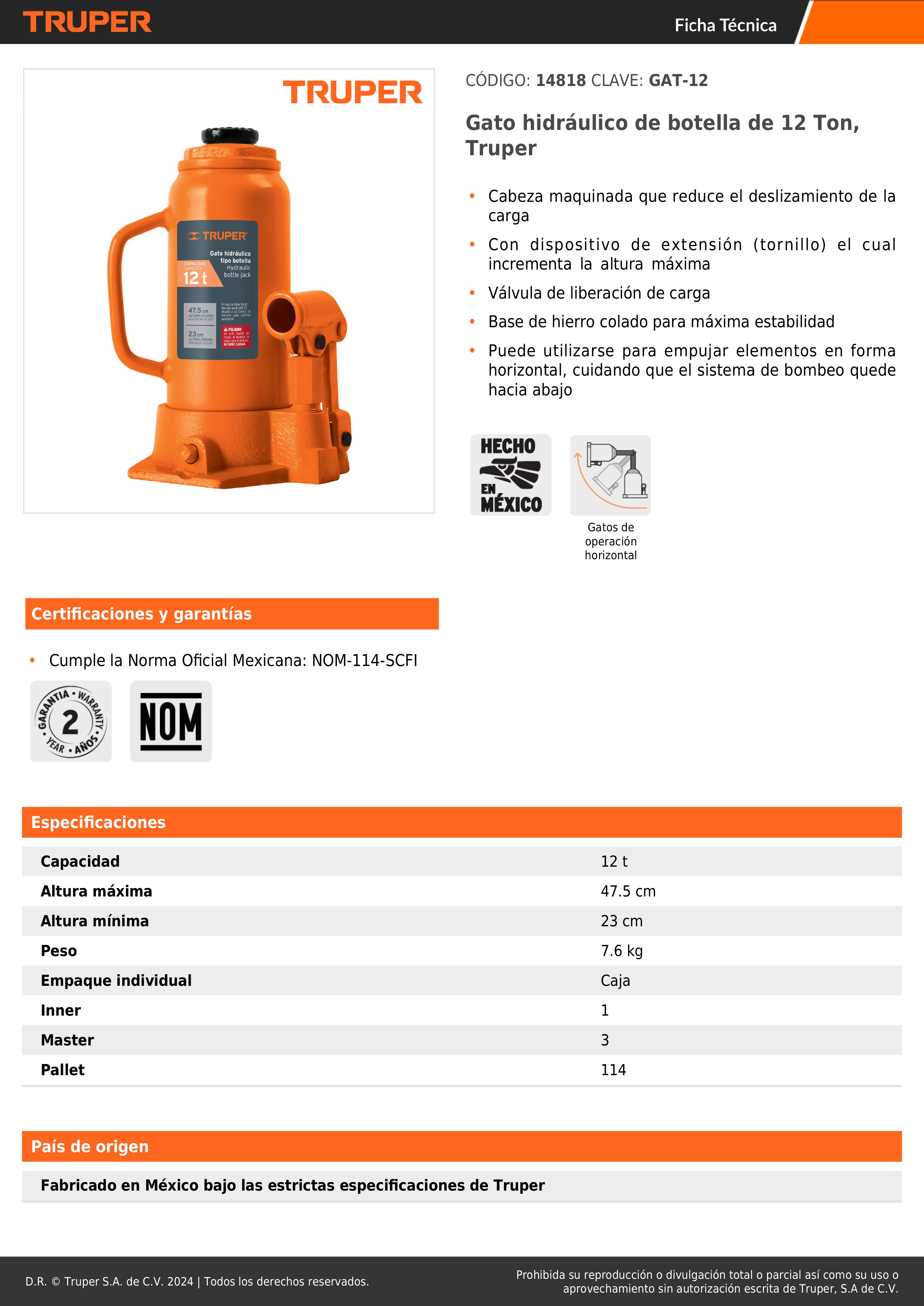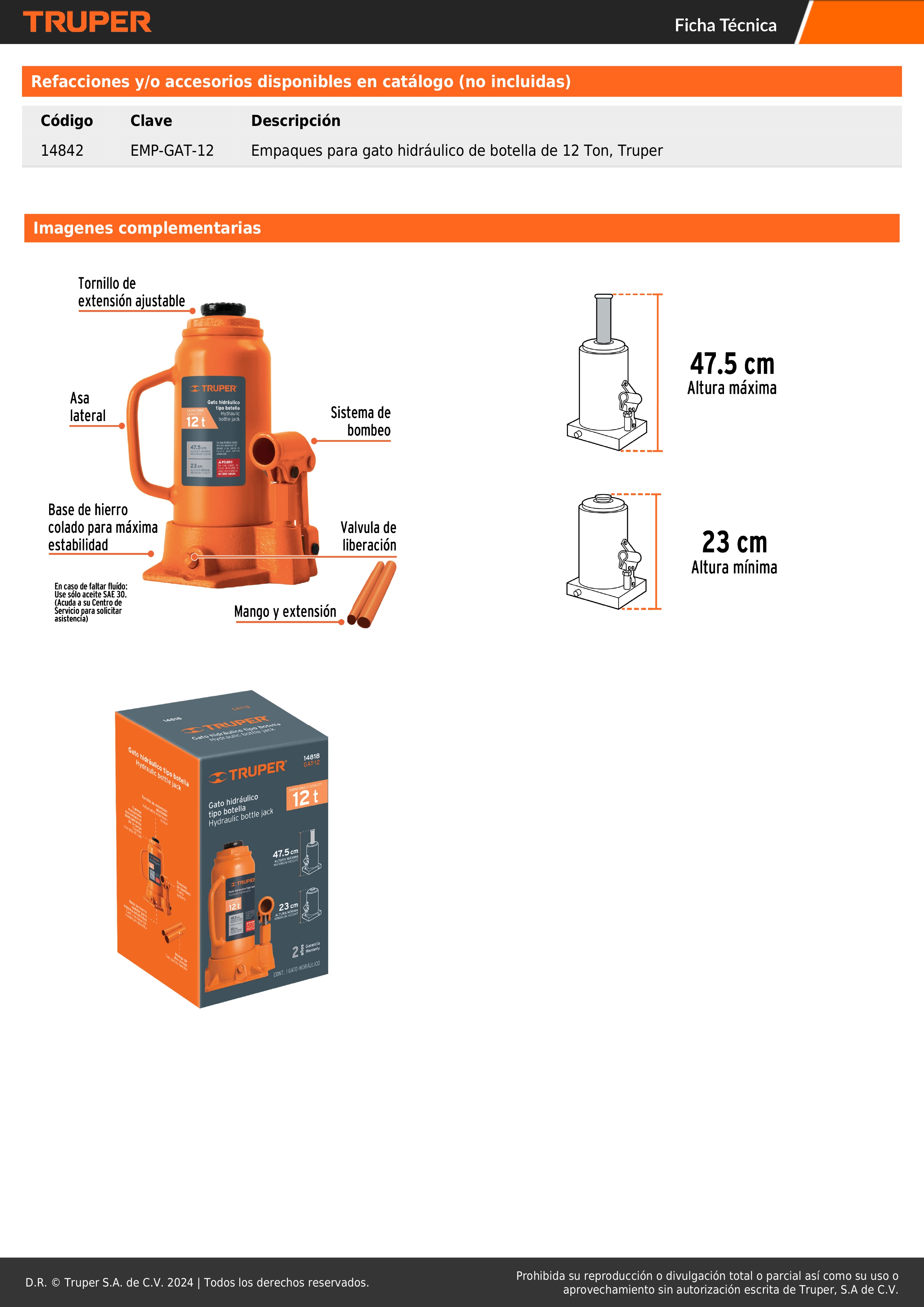 Con dispositivo de extensión (tornillo) el cual incrementa la altura máxima
