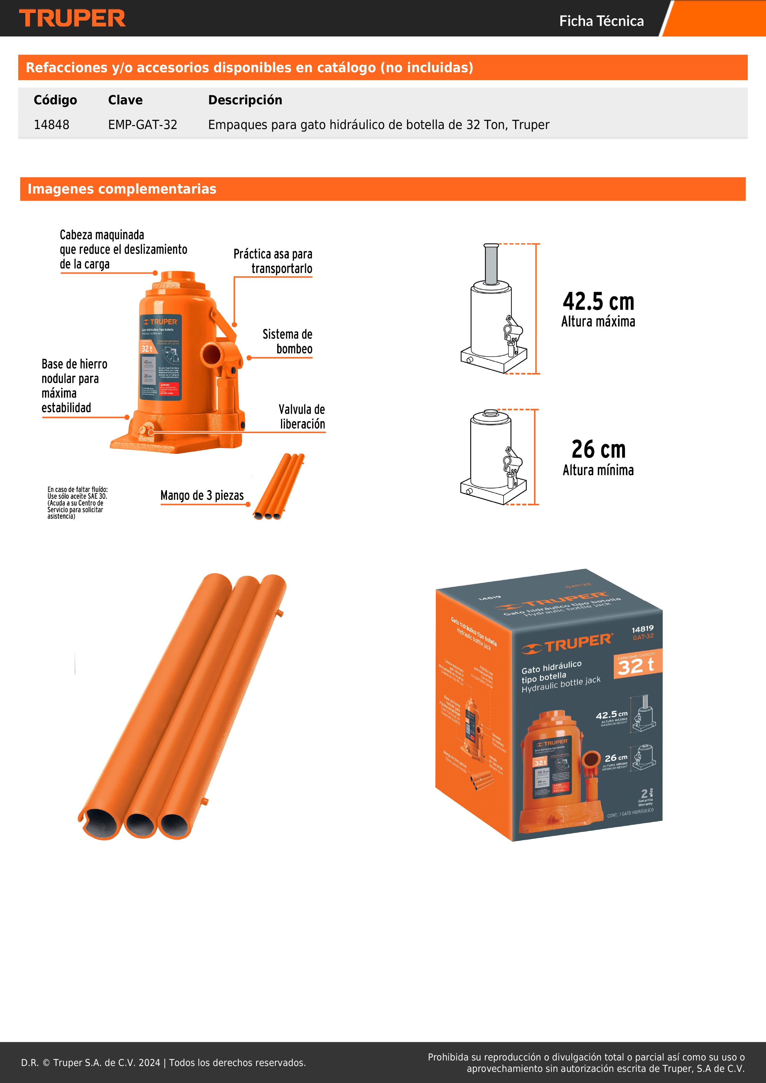 Gata botella de 32 toneladas Truper