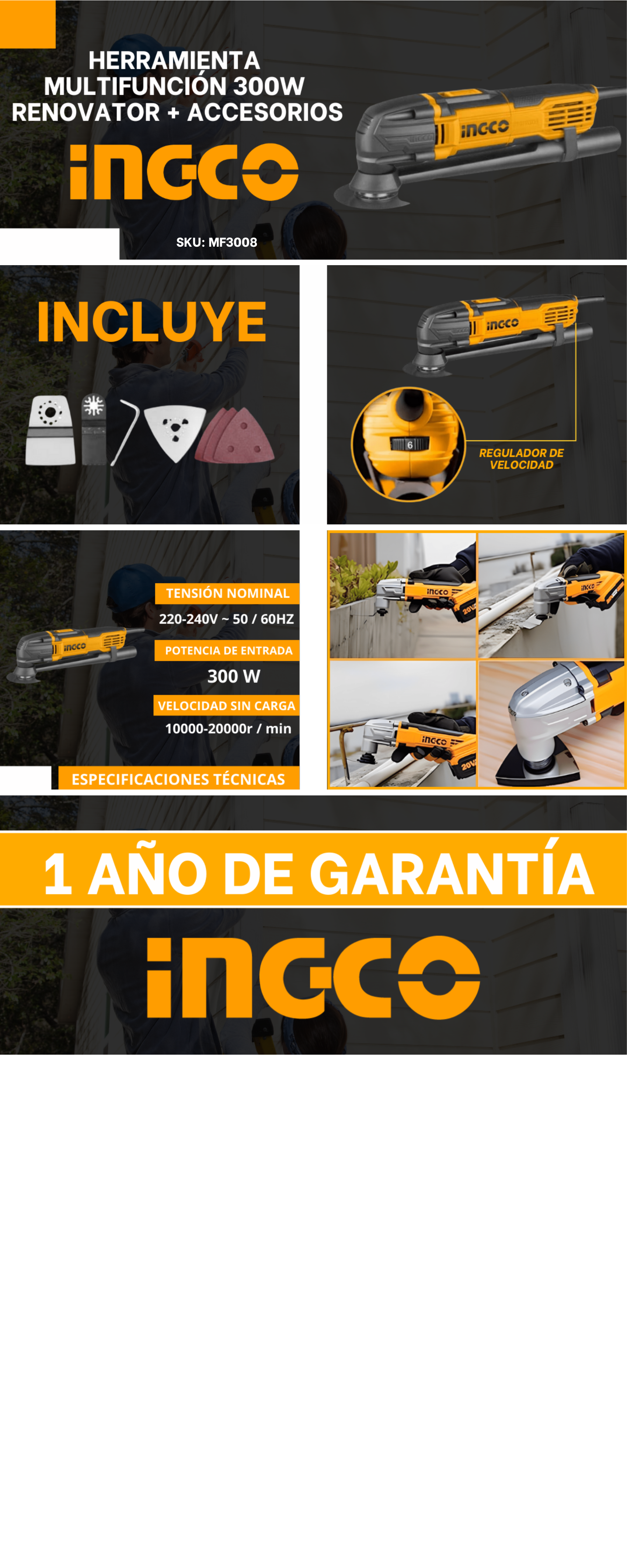 Herramienta Multifunción 300w Renovator + Accesorios Ingco