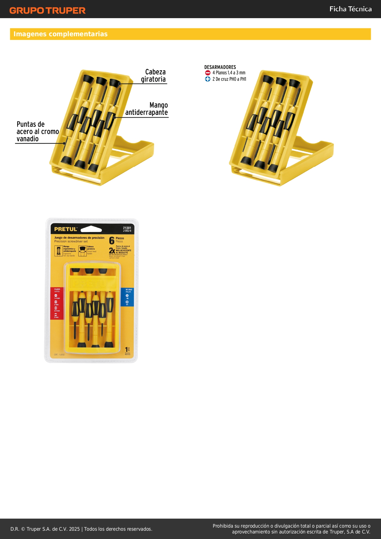 - Puntas fabricadas de acero al cromo vanadio, 2X más resistentes al desgaste que las de acero al carbono.