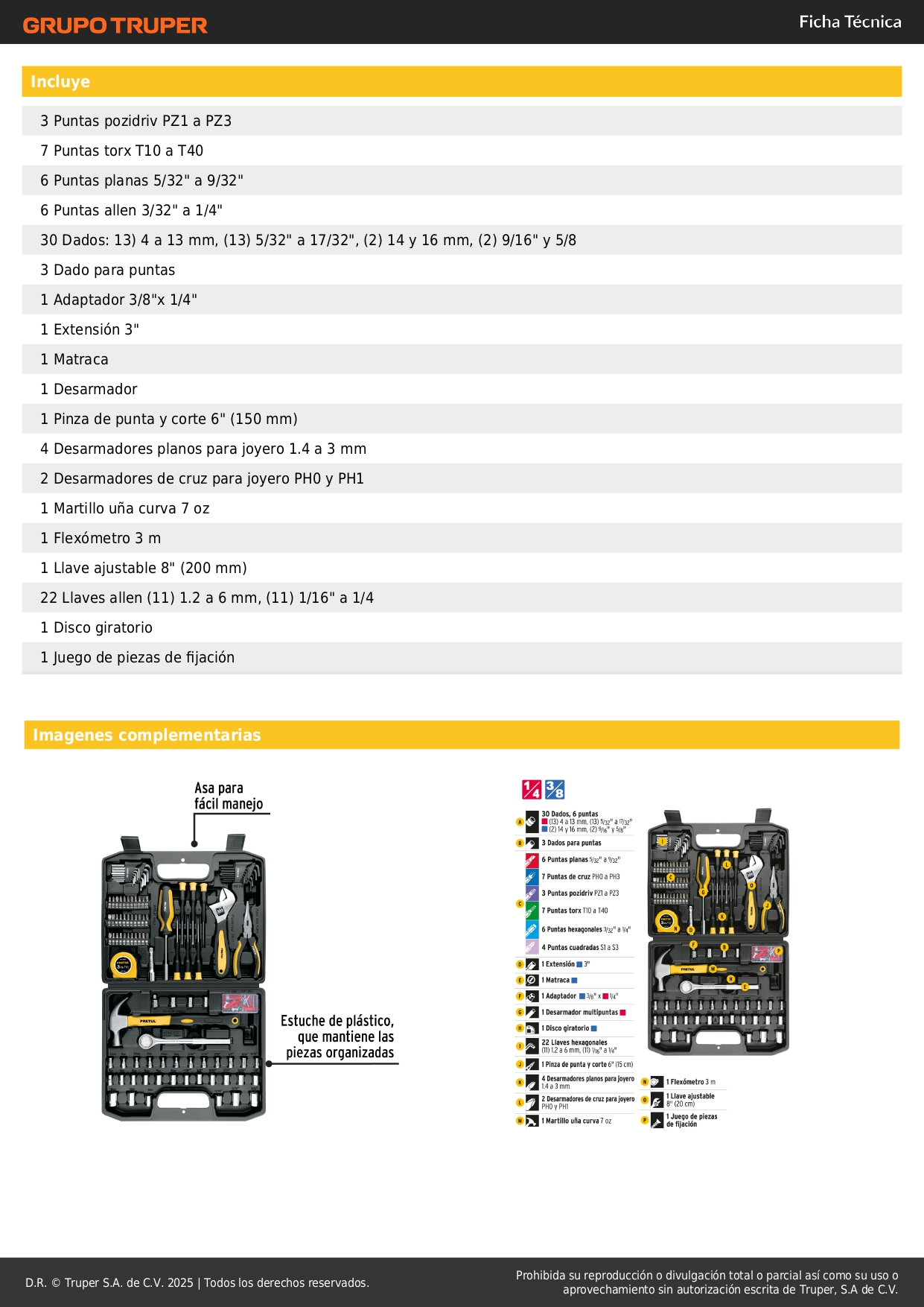 - 30 Dados: 13) 4 a 13 mm, (13) 5/32" a 17/32", (2) 14 y 16 mm, (2) 9/16" y 5/8