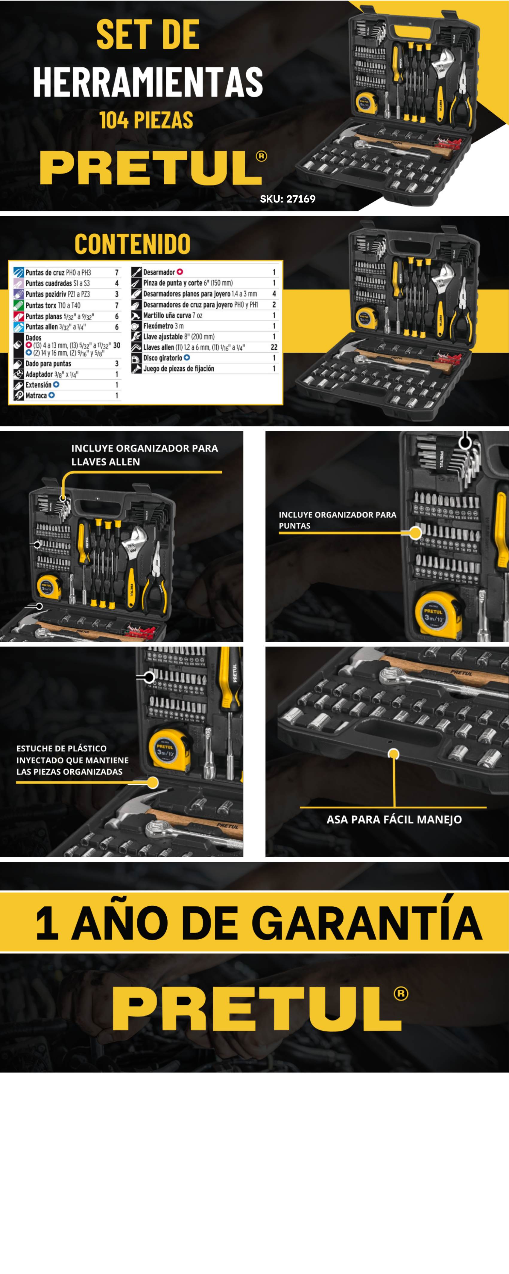- 22 Llaves allen (11) 1.2 a 6 mm, (11) 1/16" a 1/4