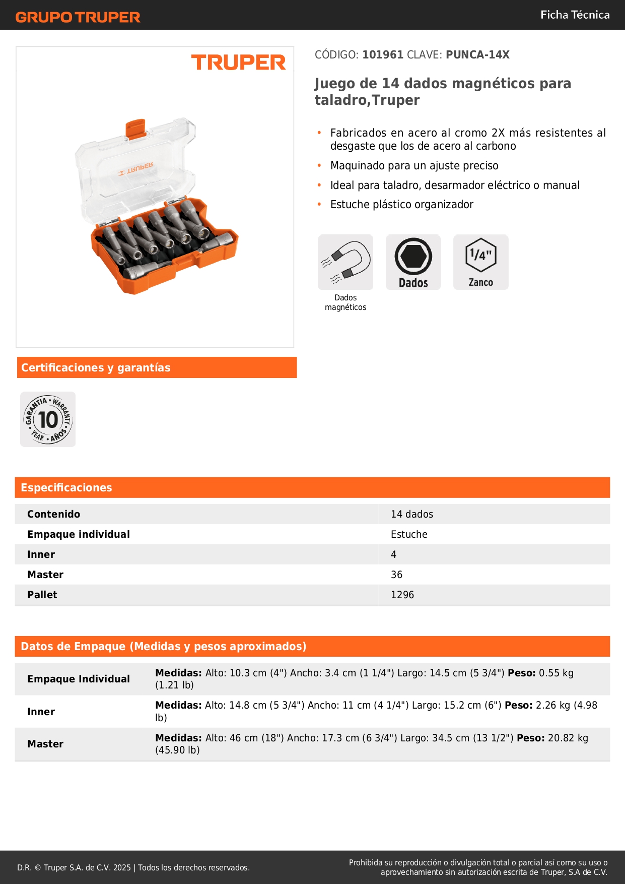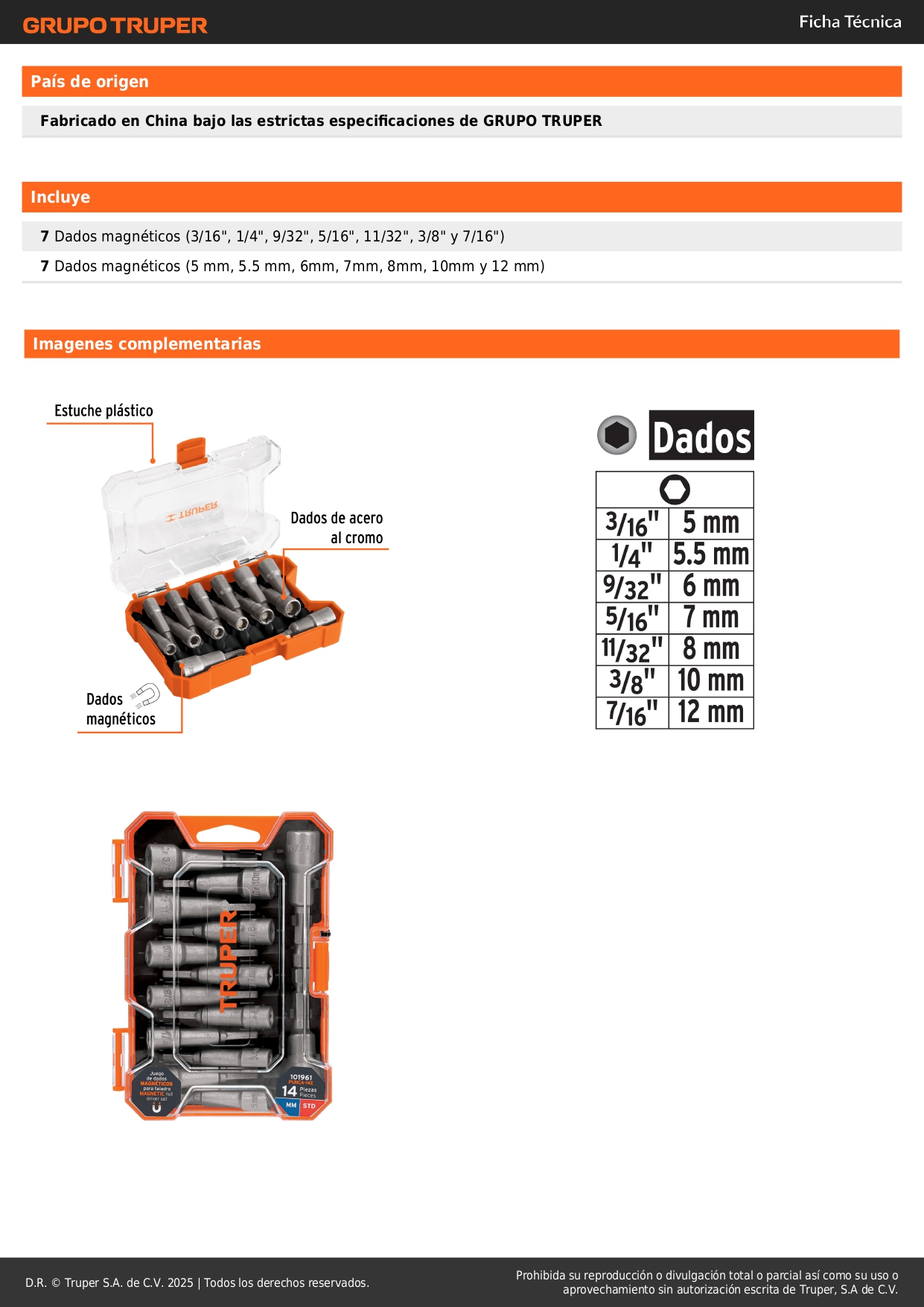 Juego de 14 dados magnéticos para taladro Truper