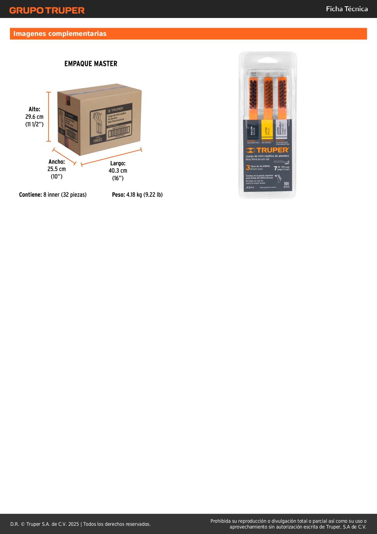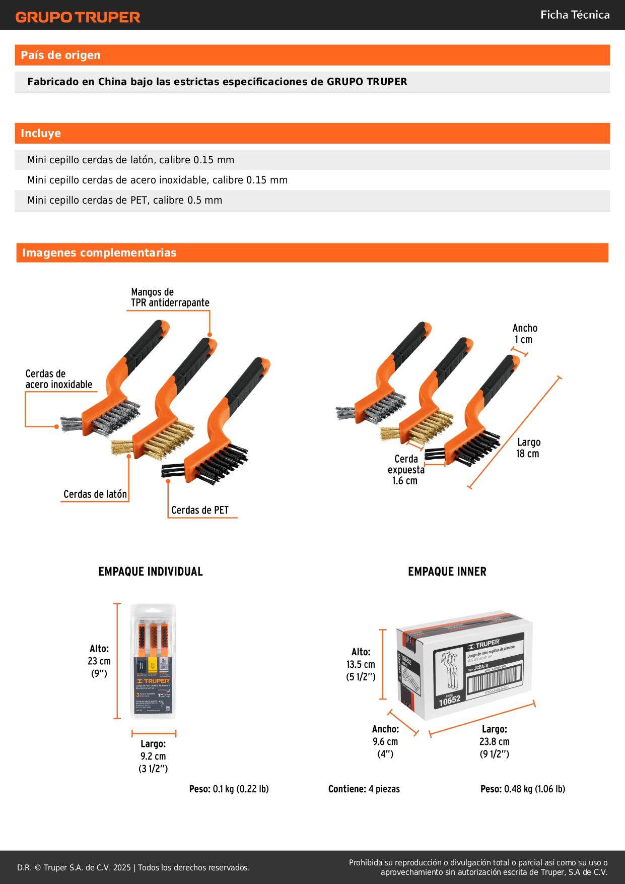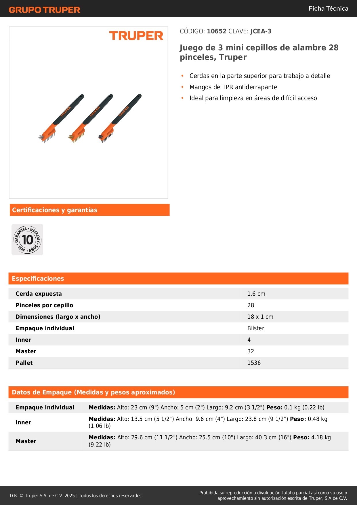 - Cerdas en la parte superior para trabajo detallado en áreas de difícil acceso.