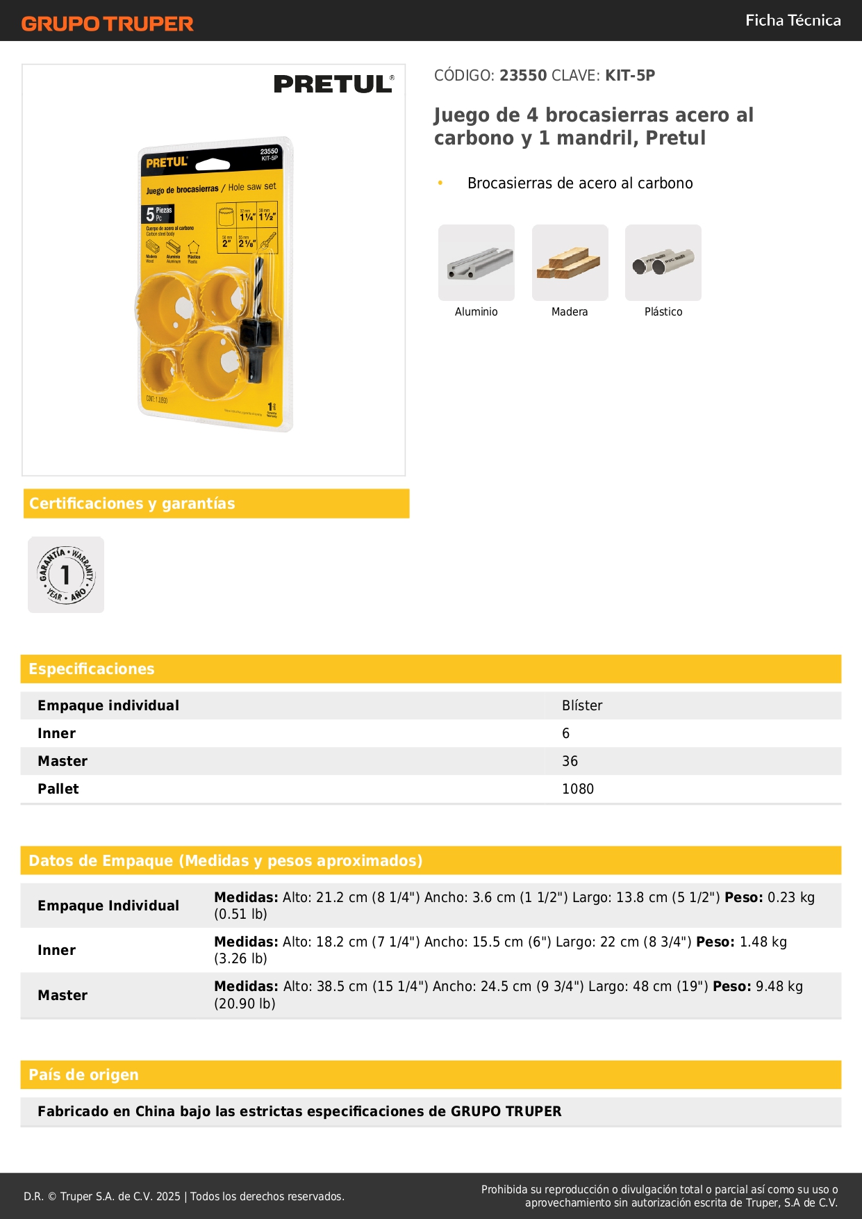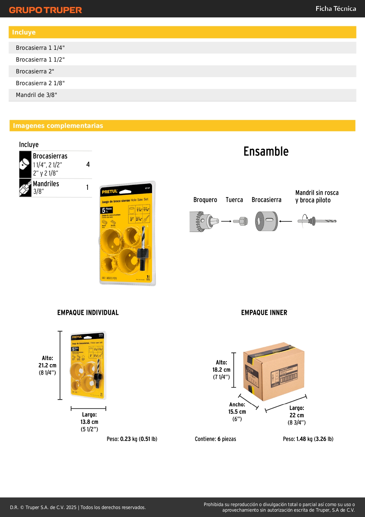 Juego de 4 Brocasierras acero al carbono y 1 mandril, Pretul