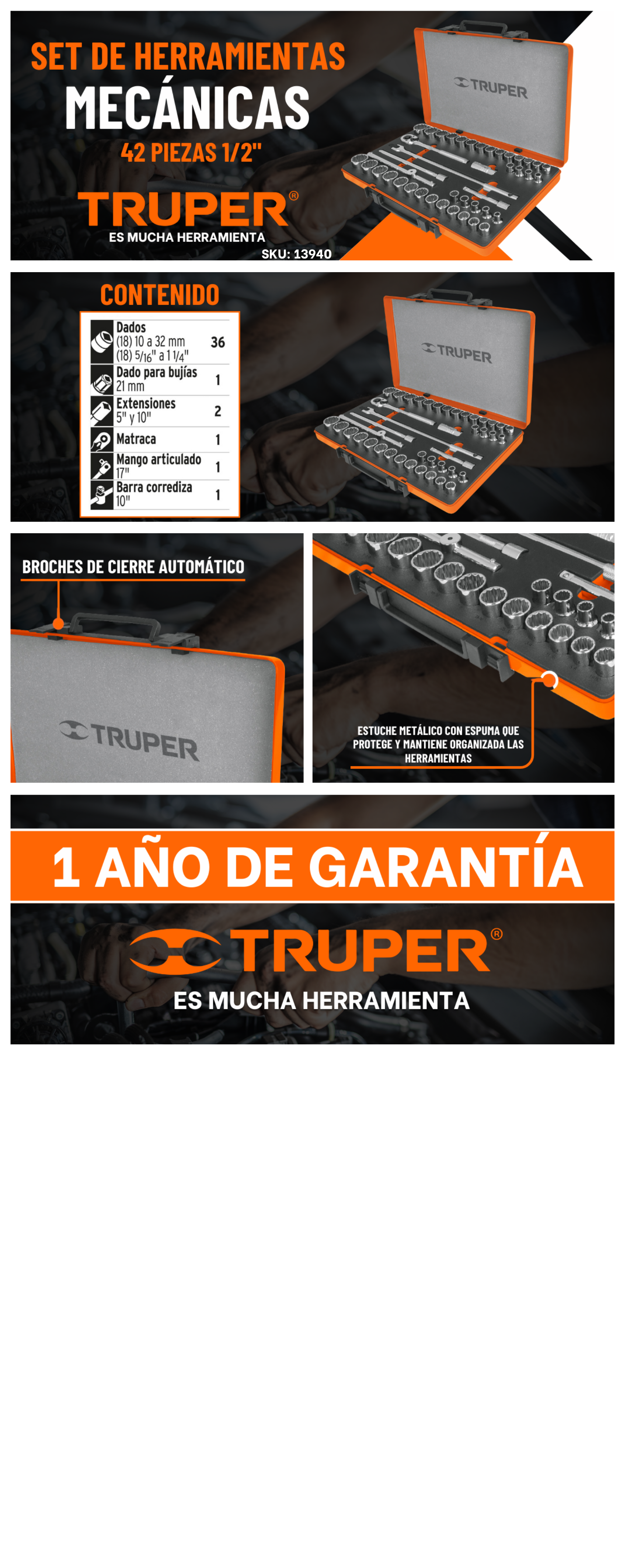 Juego de 42 herramientas mixtas encastre 1/2" Truper