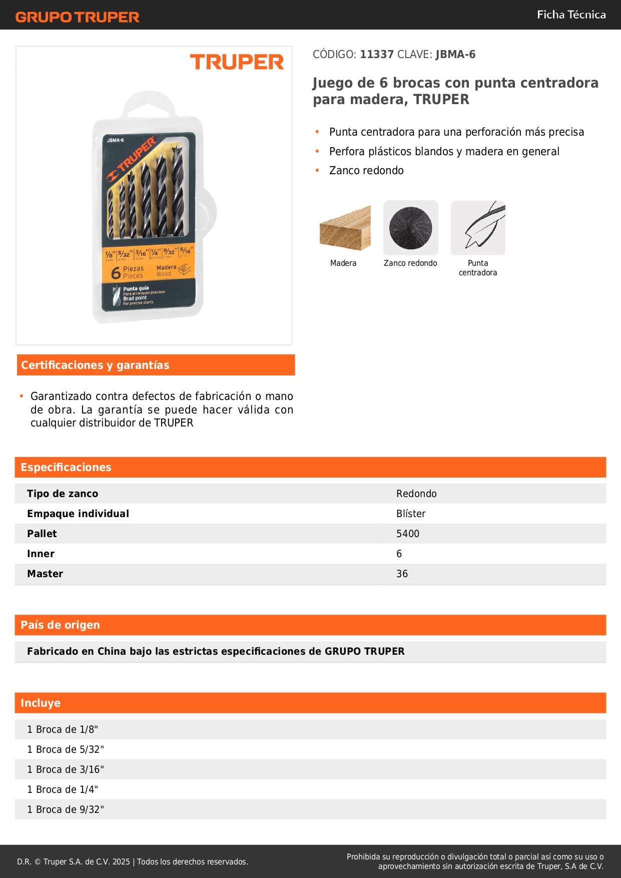 Especificaciones: