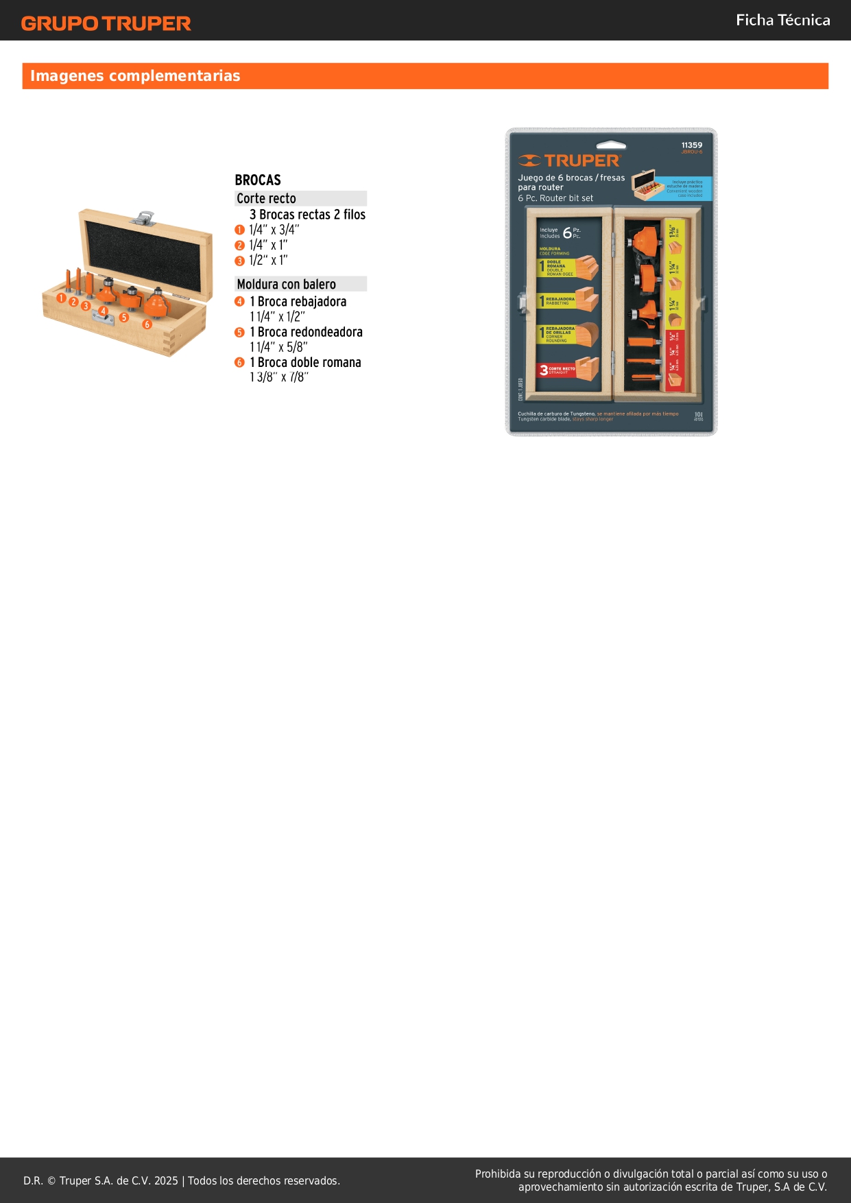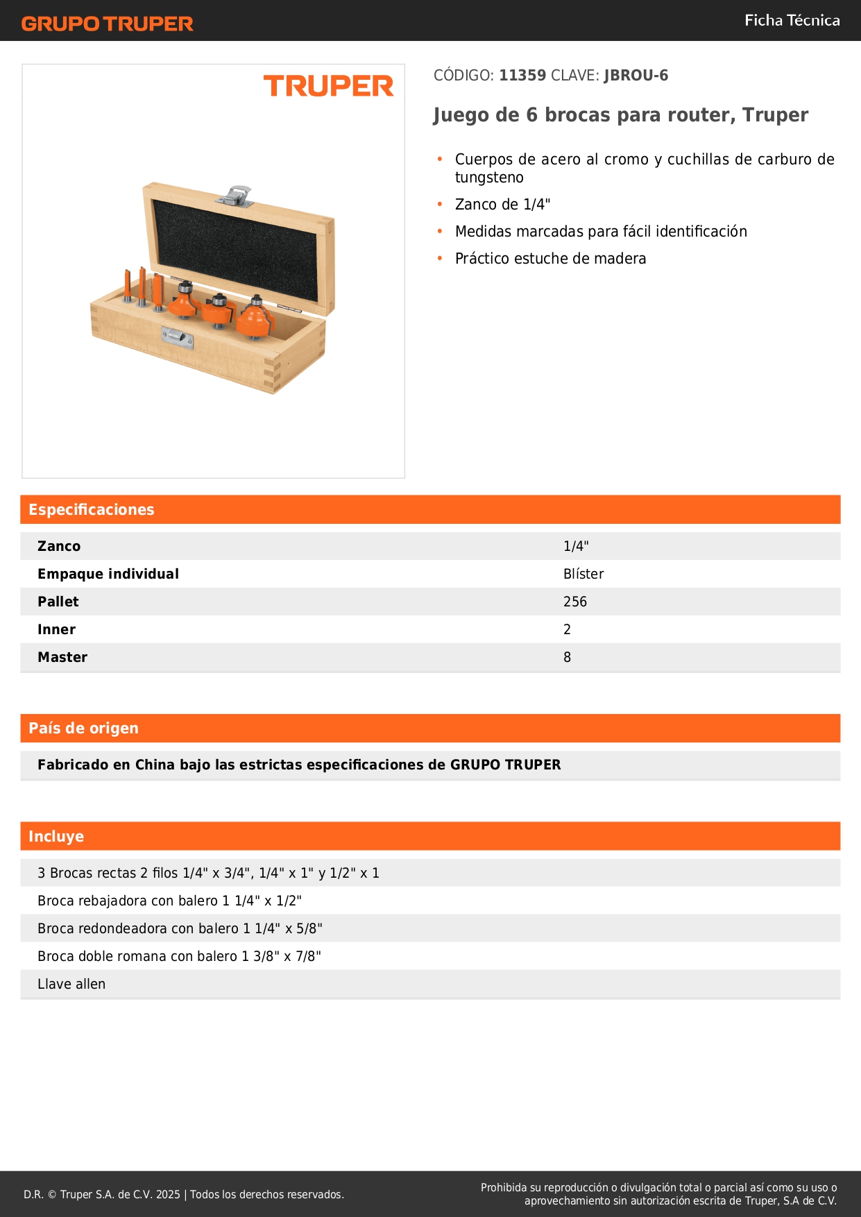 Juego de 6 brocas para router, Truper 11359