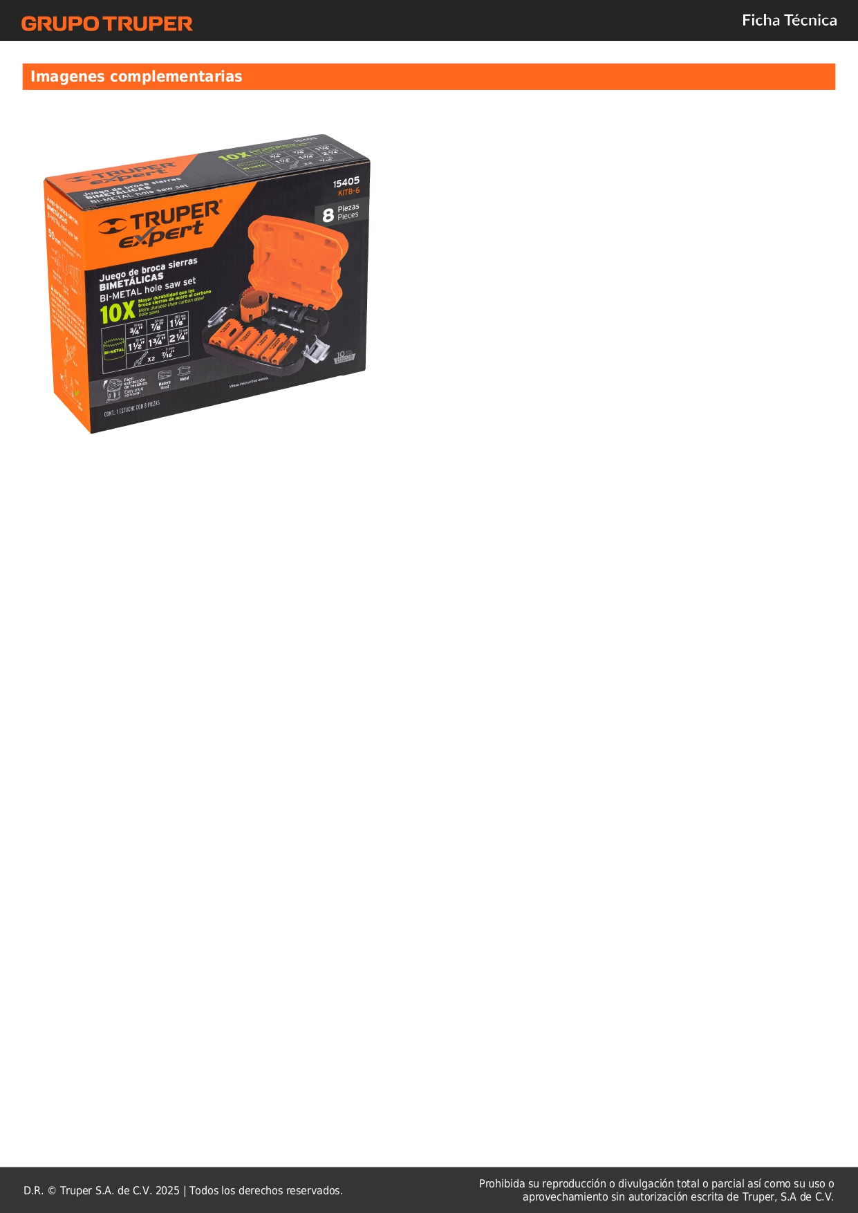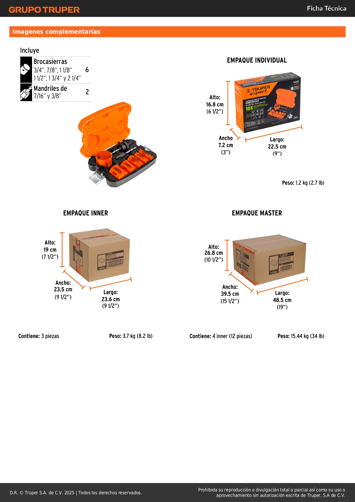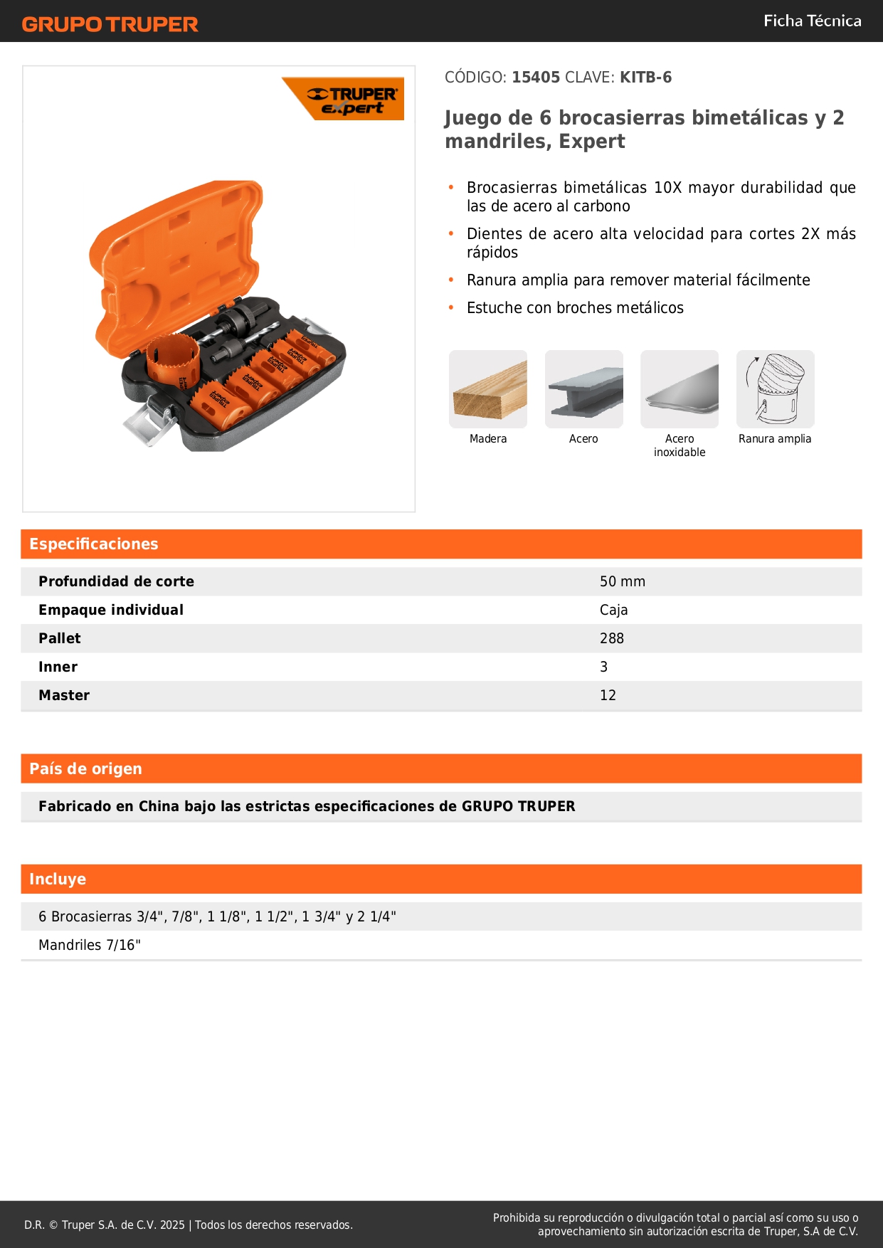 Juego de 6 sierras copa bimetálicas y 2 mandriles Truper Expert