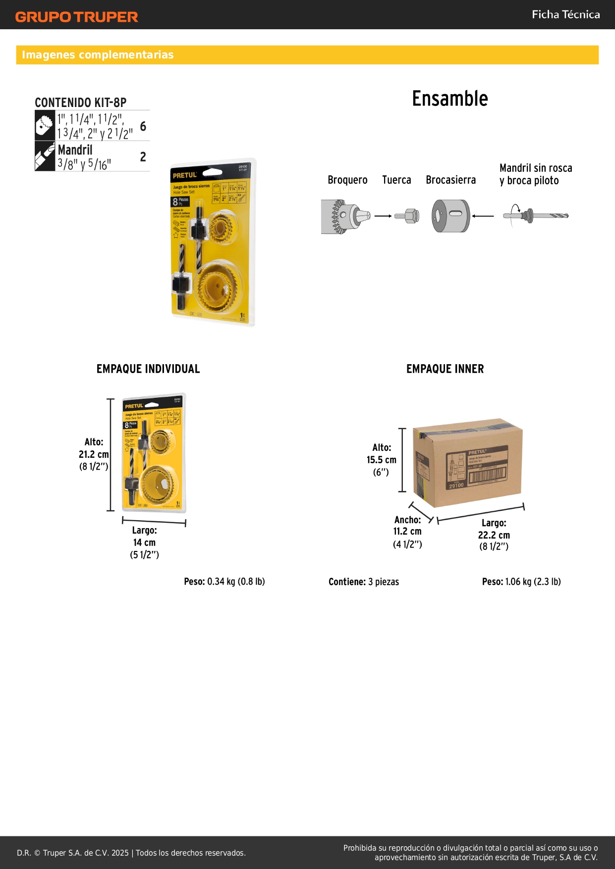 Juego de 7 brocasierras acero al carbono y 1 mandril, Pretul