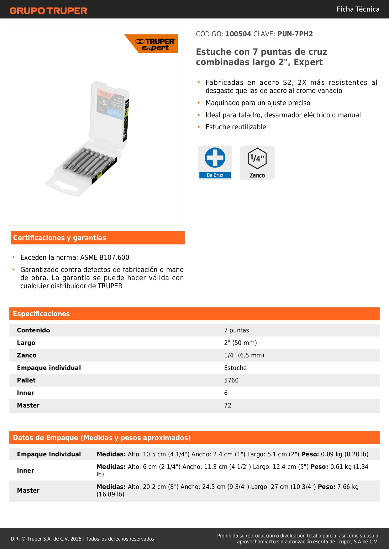 Juego de 7 puntas de cruz combinadas largo 2'', Expert Truper