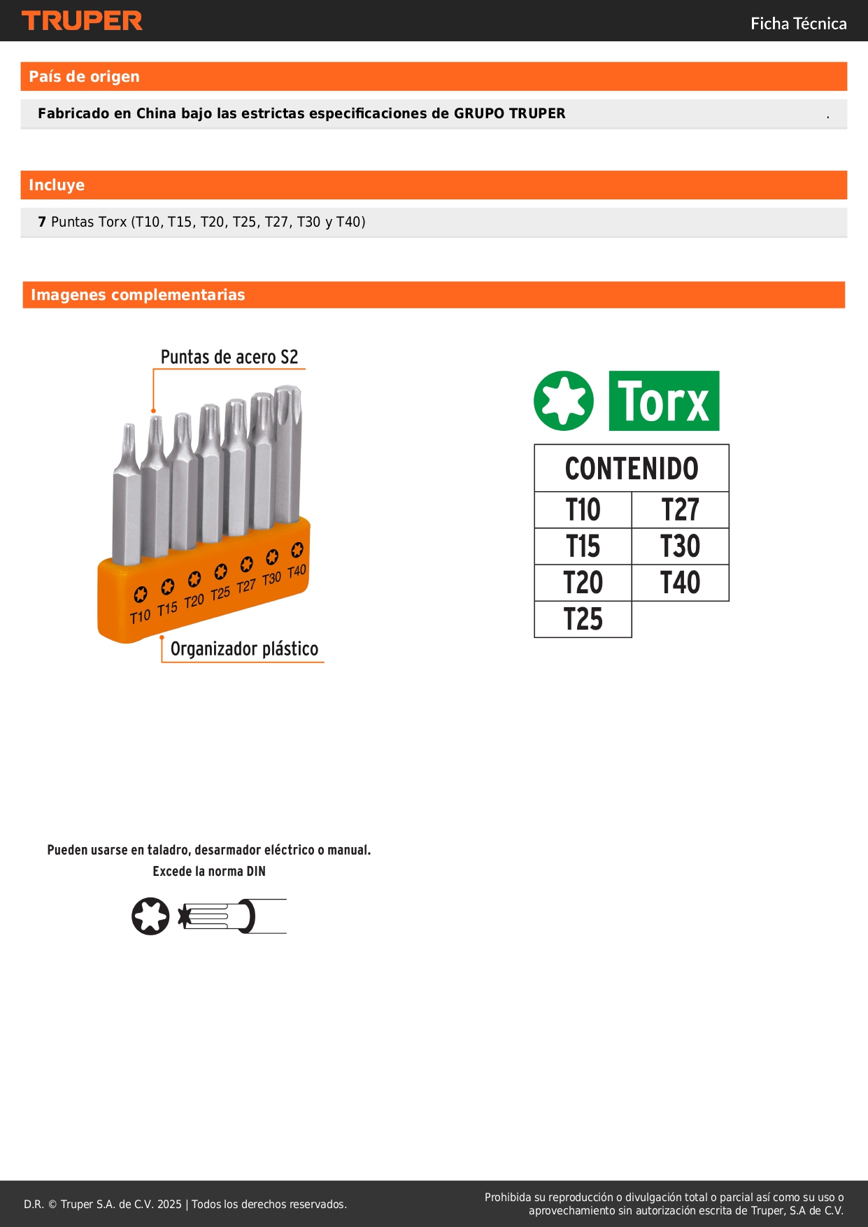 Ideal para taladro, desarmador eléctrico o manual